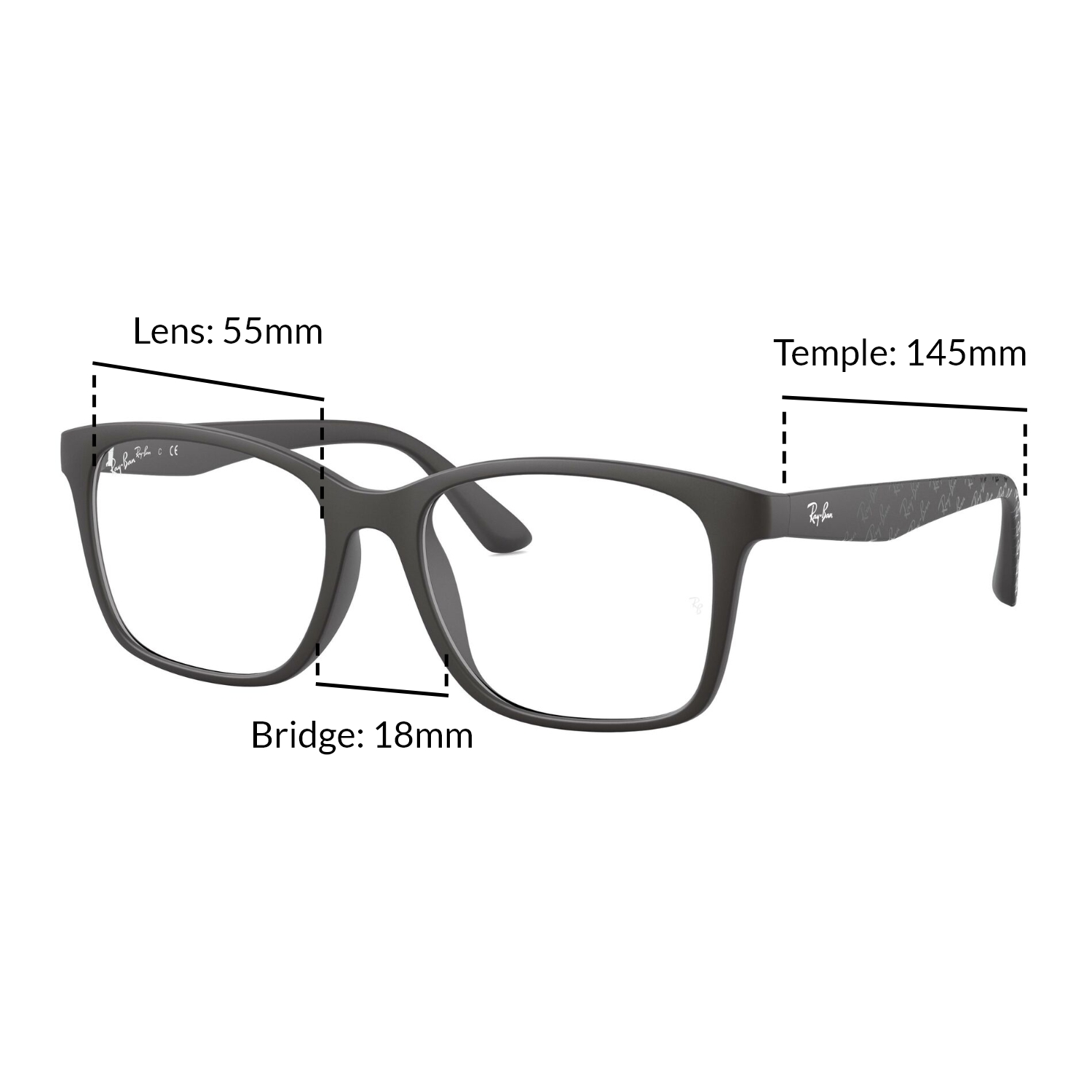 Ray-Ban SQUARE RX7059D 5196 Men Asian Fitting Eyeglasses Size 55mm