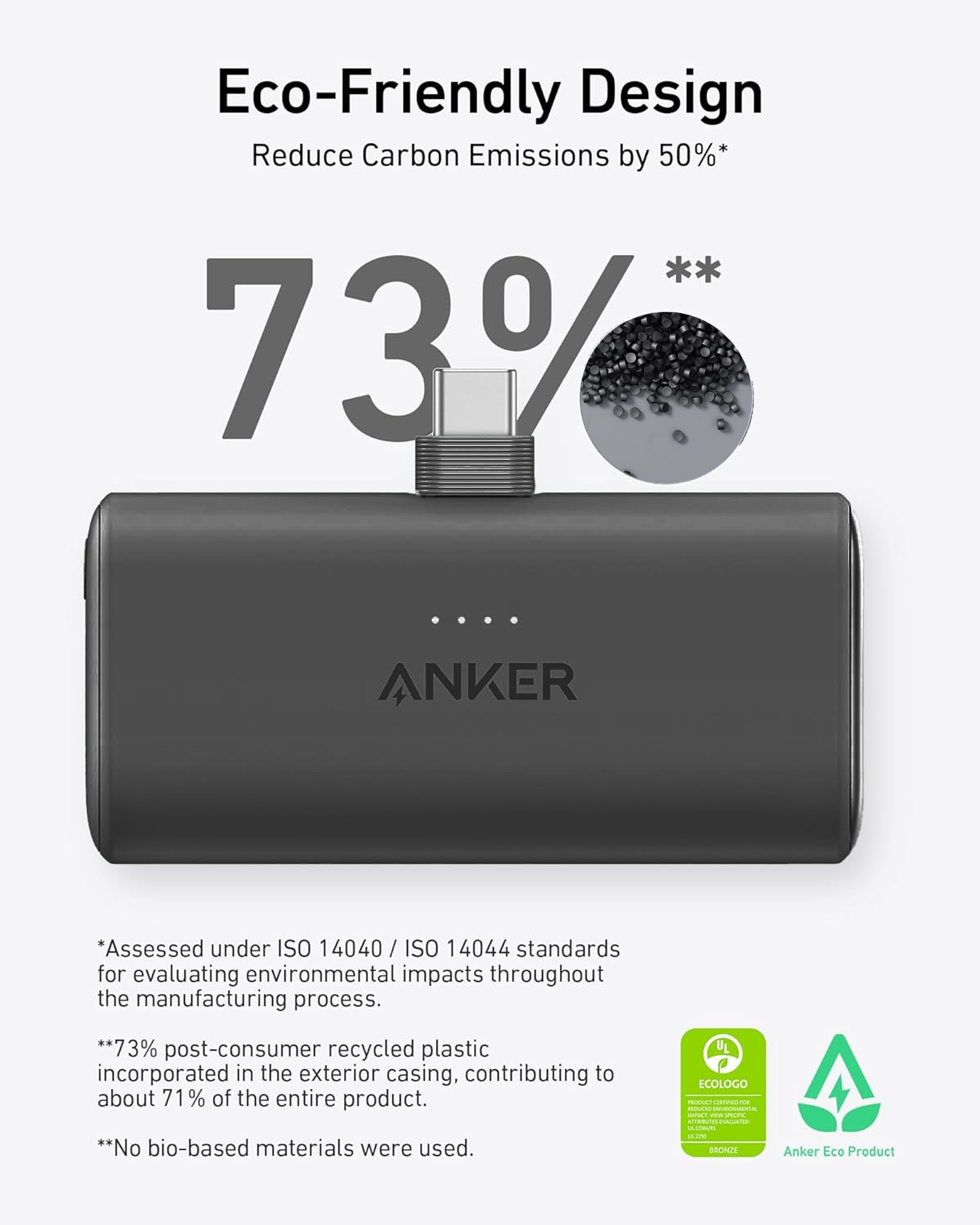 ✔️ Reduce. Reuse. Recharge: The sustainable design features an exterior made from 73% post-consumer recycled (PCR) materials, so you can charge your devices responsibly.