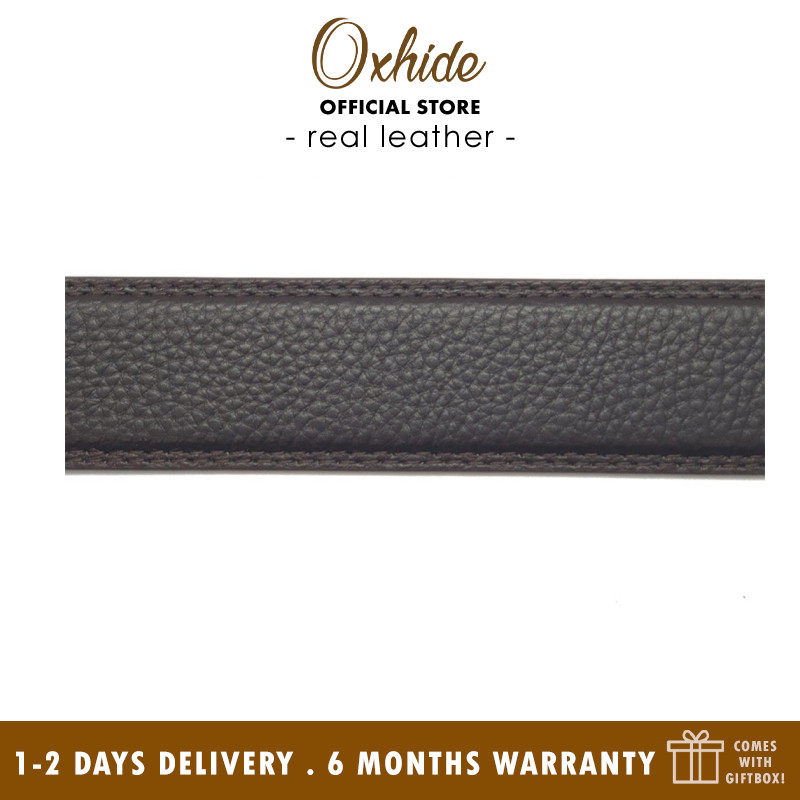 Oxhide Ratchet belt is made of top-grain leather.