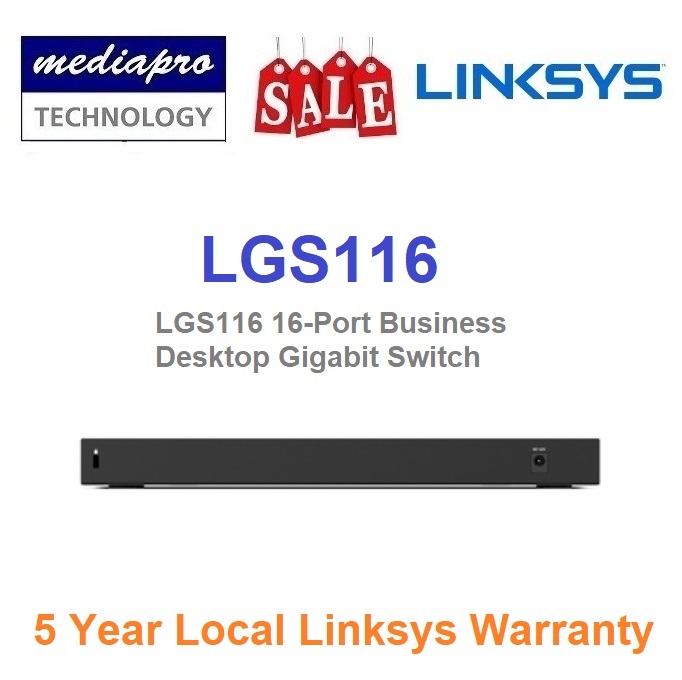 Linksys LGS116 16-Port Business Desktop Gigabit Switch with QoS, Wall Mount - 5 Year Local Linksys Warranty
