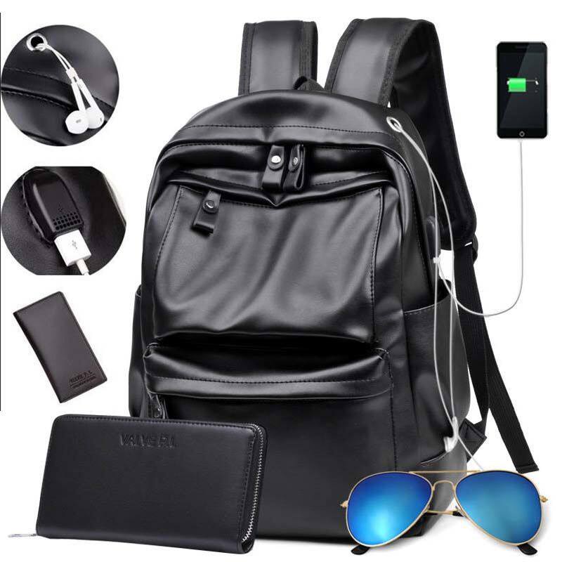 Backpack male Korean men's backpack fashion trend leather texture school bag new travel large capacity junior high school students