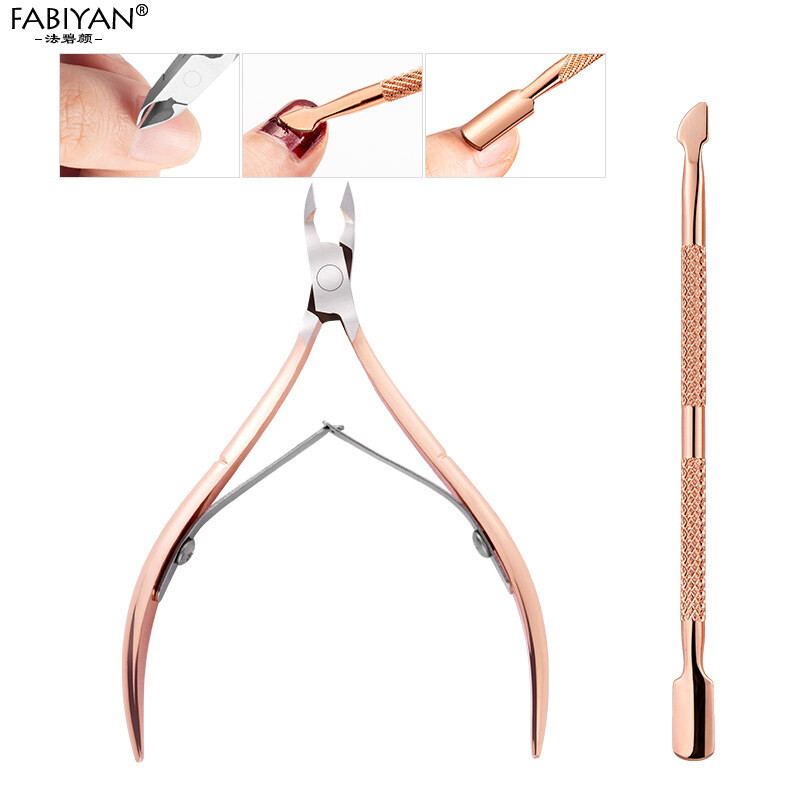 3Pcs Nail Art Rose Gold Stainless Steel Dead Skin Remove Clipper Trimmer Scissor Gel Polish Dirt Cleaning Cuticle Pusher Manicure Tool