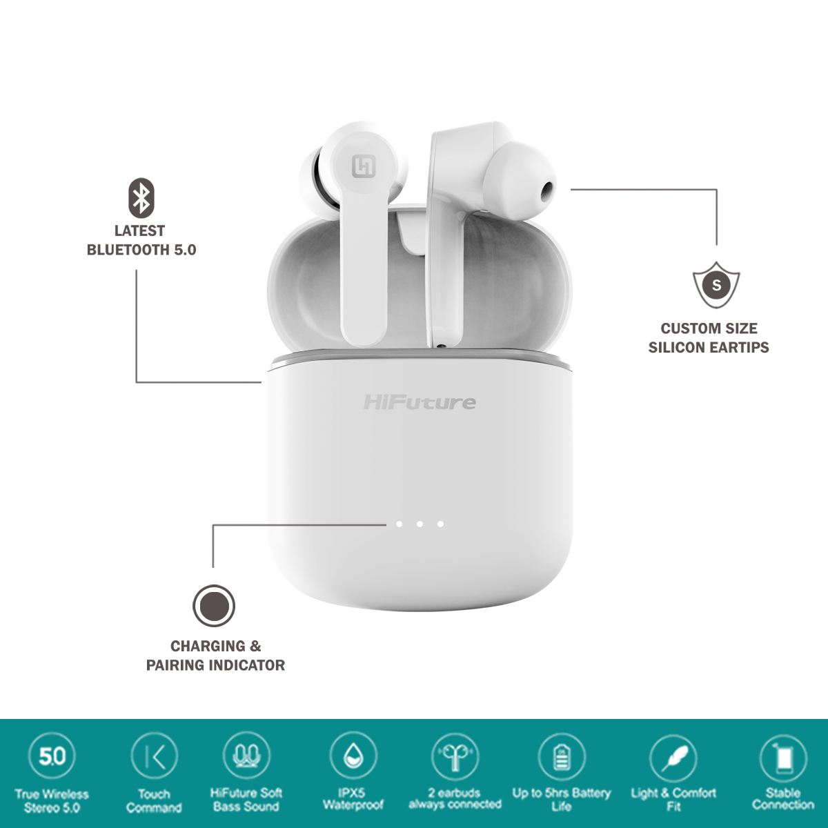 【SG Seller】HiFuture FlyBuds True Wireless Earbuds Bluetooth 5.0 Earphone Sport Music Earphones Touch Control Earbuds Noise Canceling Headset with Built-in Microphone -Pink/Green/White/Black