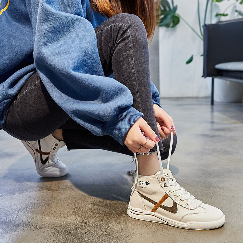 Hong Kong Fashion Brand Genuine Leather White Shoes for Women 2022 Spring and Autumn New Korean Style Versatile Breathable High-Top Casual Sports Shoes