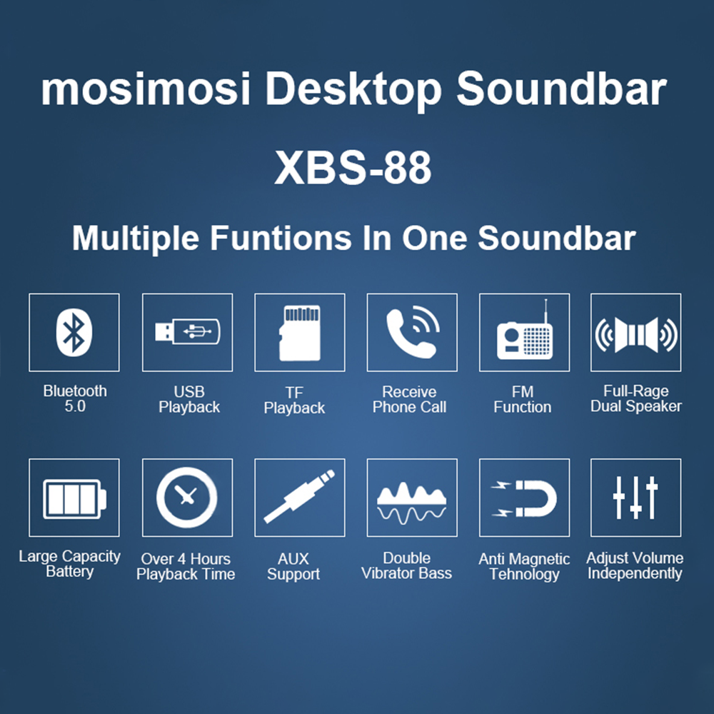 mosimosi New Desktop Soundbar XBS-88 / Bluetooth 5.0 / 10W Full Power Sound Bass Bluetooth 5.0 / Local Warranty