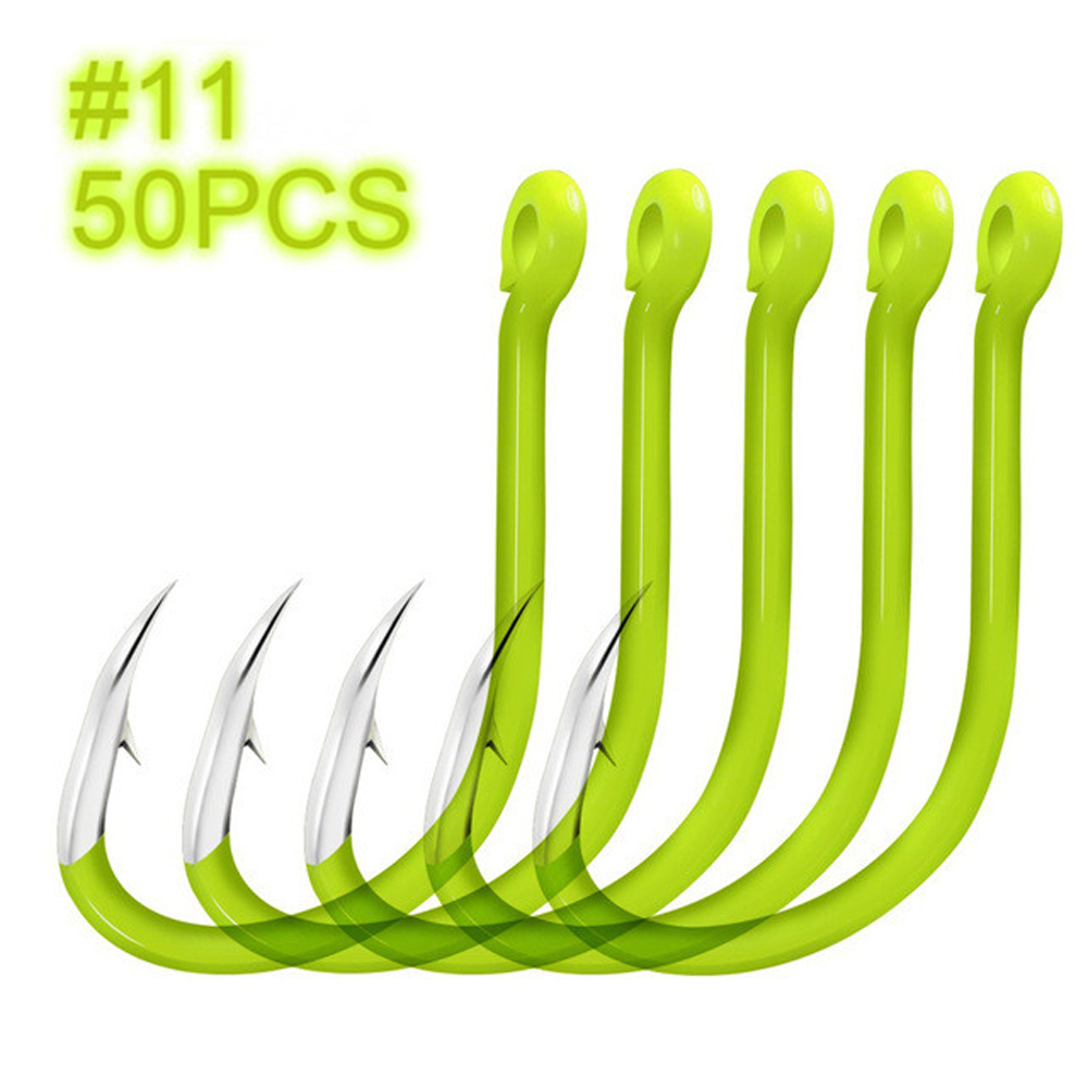 50pcs Fishing Accessories Sea Tackle for Carp Bait Holder Carbon Steel Fishing Hooks #8 / #9 / #10 Luminous Fishhooks