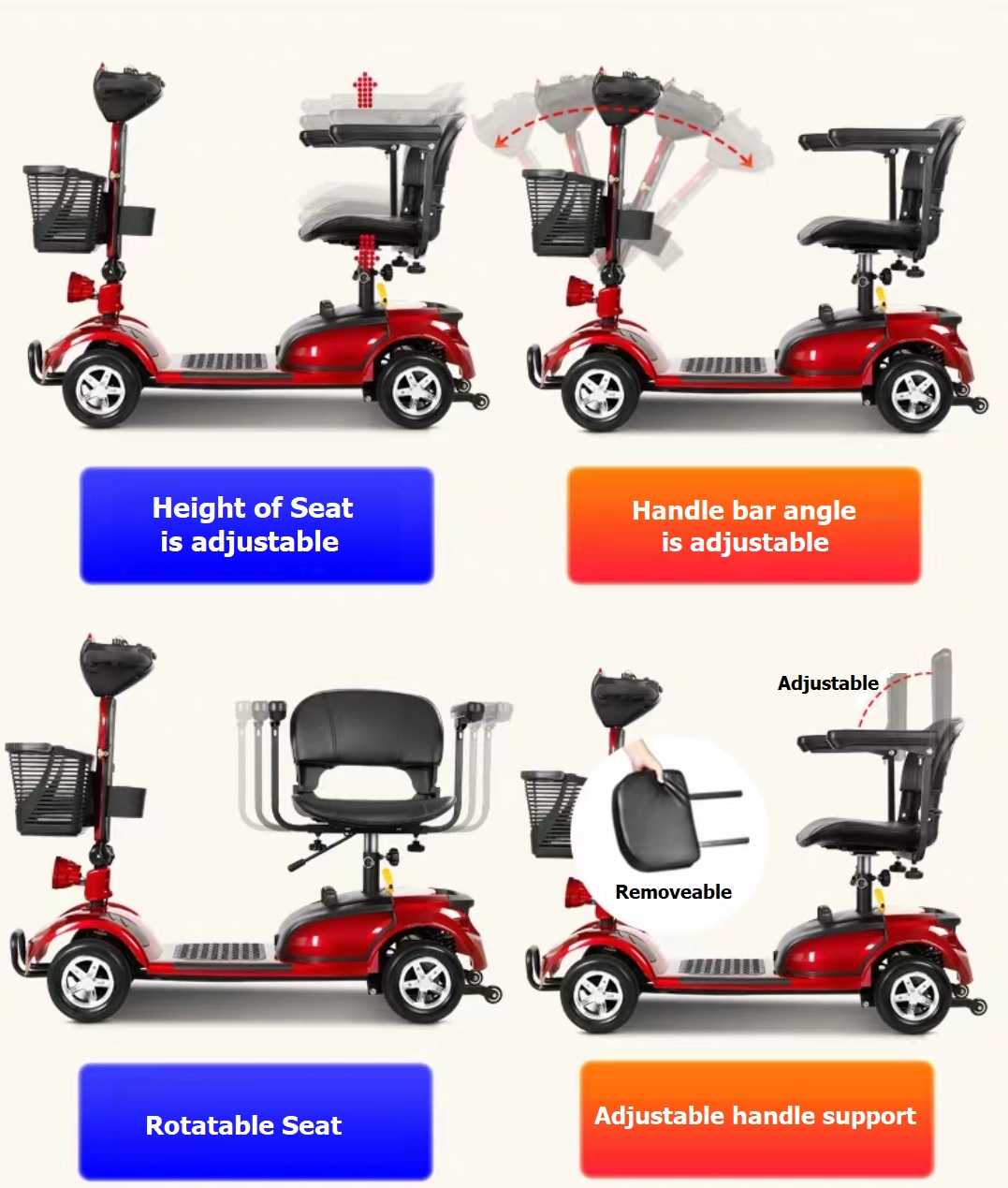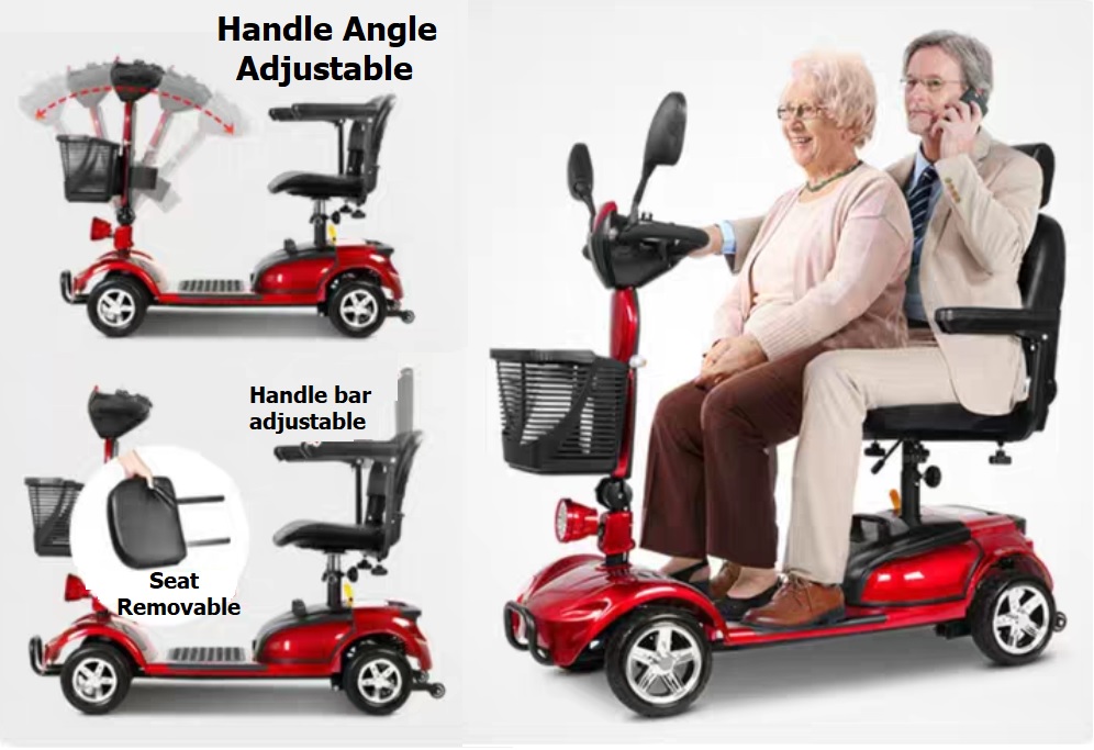 Brand new 4 wheels mobility scooter for sale. Dual seats design which able to accomodate for 2 adults.