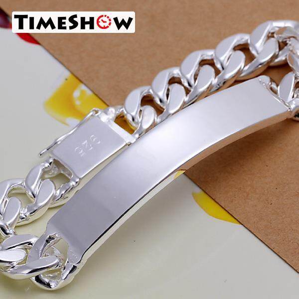 TimeShow New Fashion Jewelry 925 Sterling Silver 10MM Flat Side Chain Bracelet For Unisex Man Women Gift
