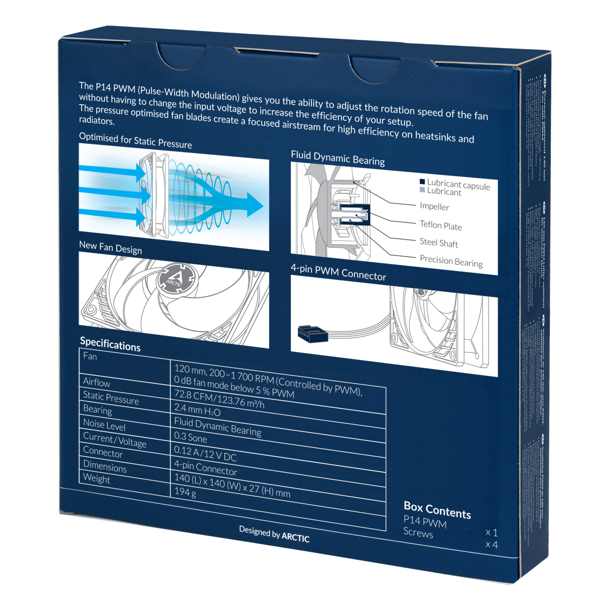 (ALLSTARS : We Are Back / DIY Promo) ARCTIC P14 PWM Pressure-optimised 140mm Fan with PWM (Black/Black) (ACFAN00124A) (Warranty 3years with TechDynamic)