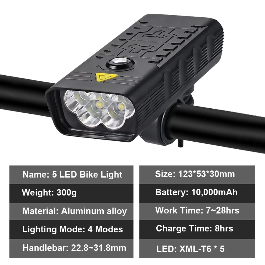 【5 LED 3000 LUMEN OUTPUT】The bicycle light is very bright, the maximum output is 3000 lumens, and the five LED lights cover a wide range, allowing you to ride at night to see wider and further areas, and equipped with bicycle taillights to make your ride safer.