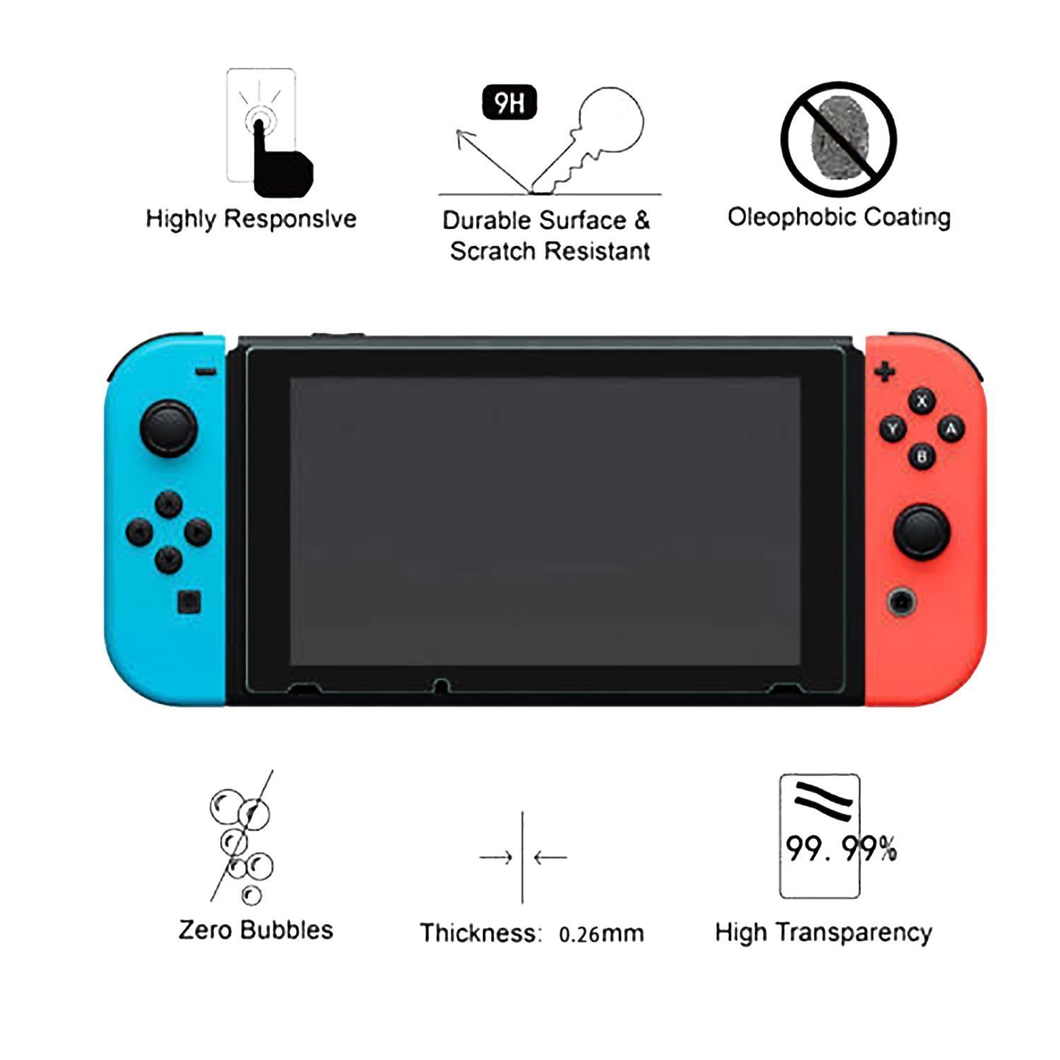 • Scratch Resistant - This screen protector can effectively protect your Nintendo Switch/ Switch Litefrom unwanted scuffs and scratches by knife, keys and some other hard substances.