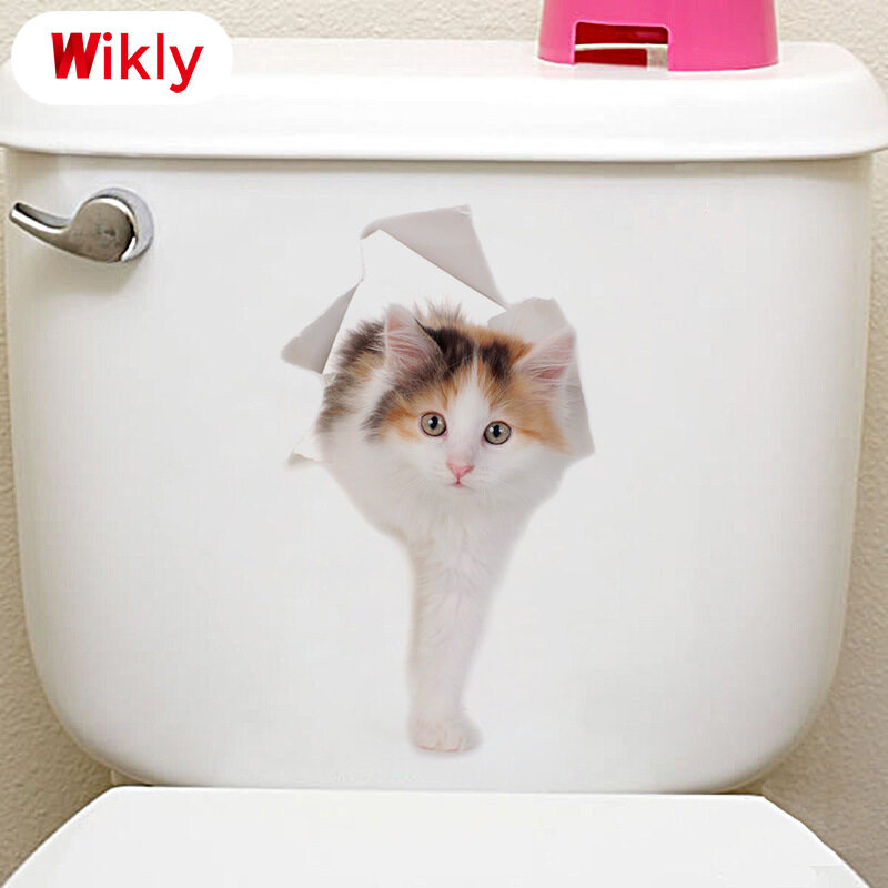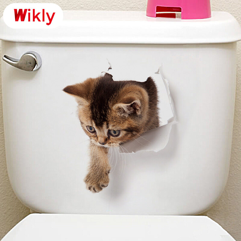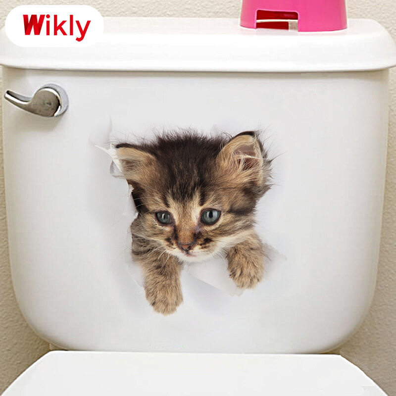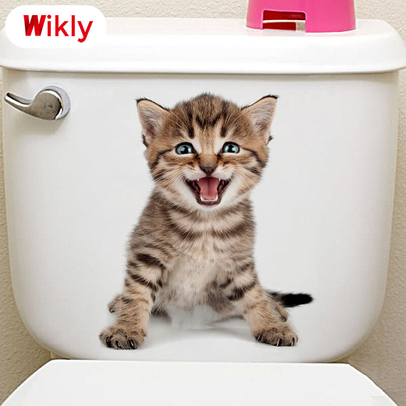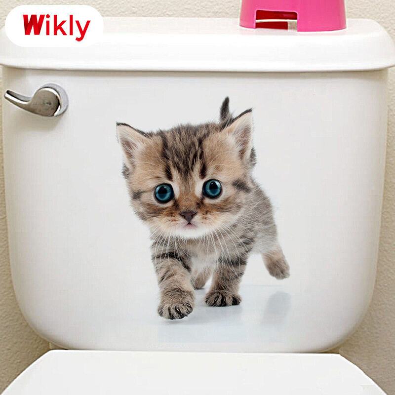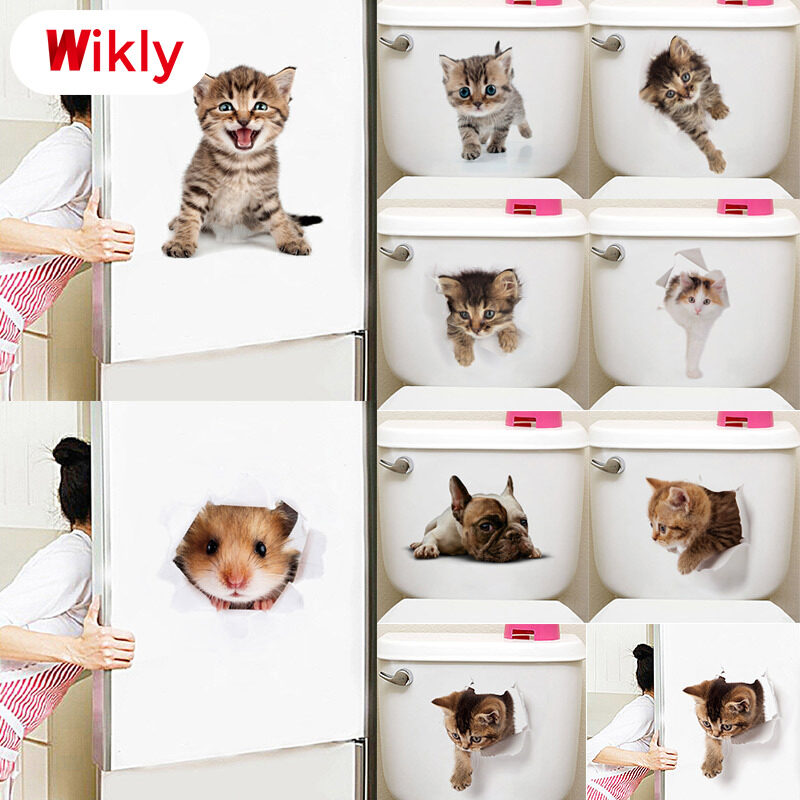 Wikly 3D Cat Dog Wall Sticker Bathroom Bedroom Animal Decals Toilet Stickers Home Decoration Art Poster