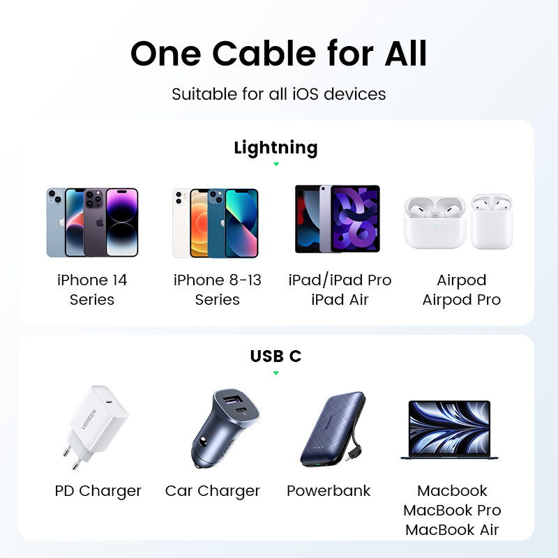 For iPad Air 2020 10.9”(4th Generation), iPad Pro 12.9" Gen3/Gen4, and iPad Pro 11", you need a USB-C to USB-C Cable, not USB-C to Lightning Cable.