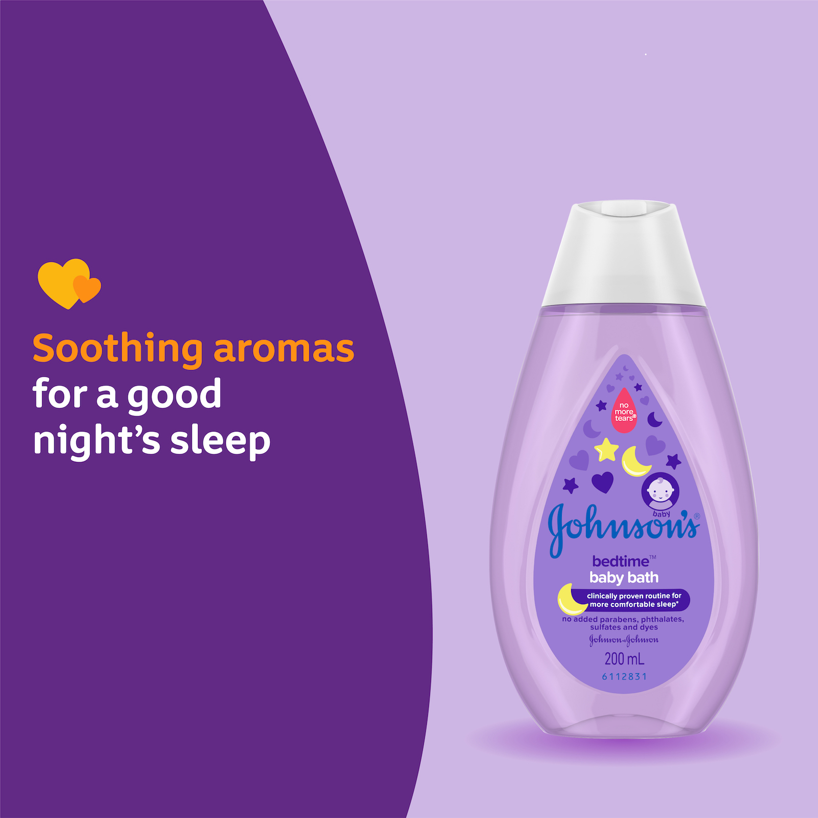 Johnson's® Bedtime™ baby bath with NaturalCalm® essence, clinically proven to help calm and comfort baby before sleep*
