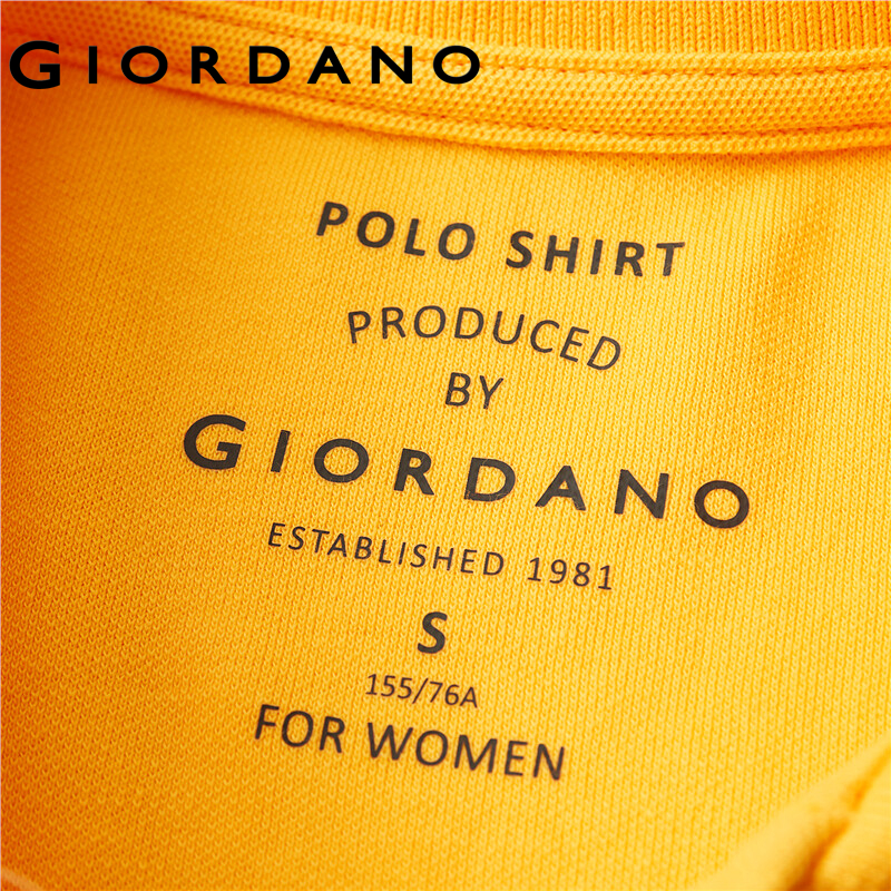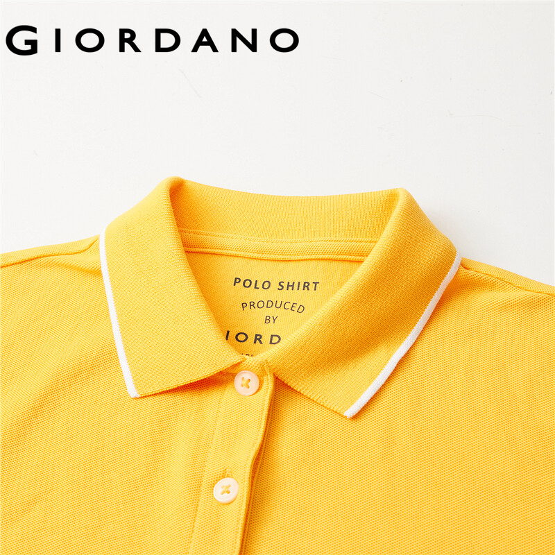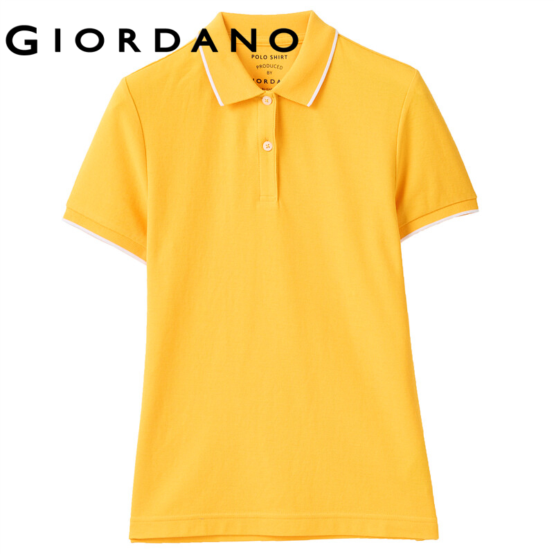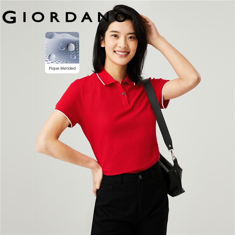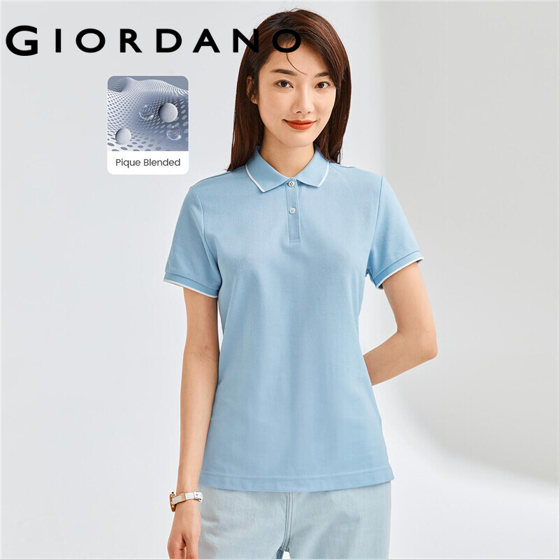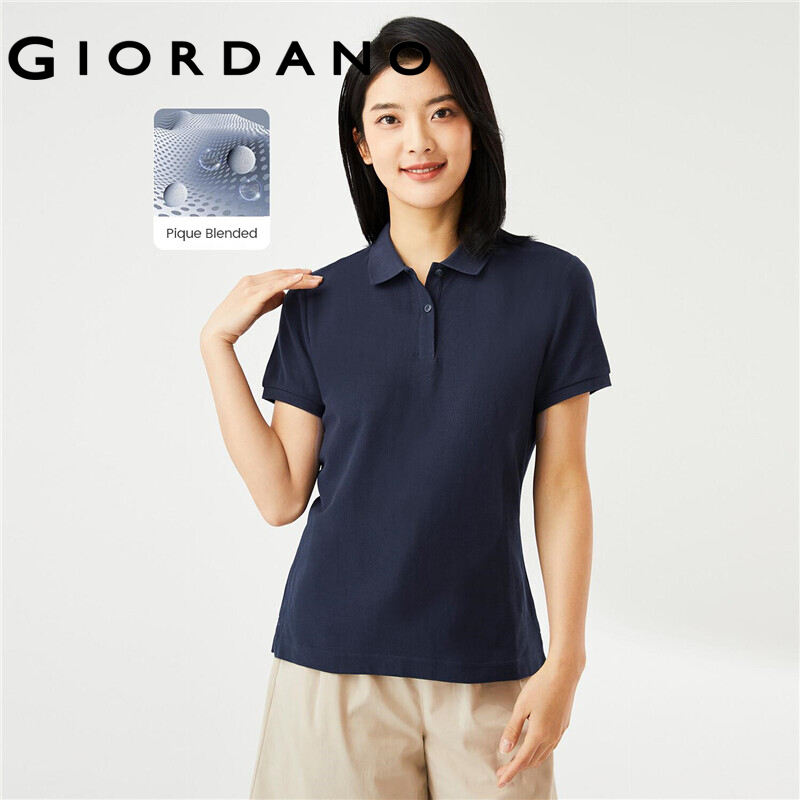 Giordano Women Polo Shirts Classic Collar Ribbed Cuffs Pique Polo Shirts Mesh Structure Short Sleeves Slim Polo Shirts 05311399