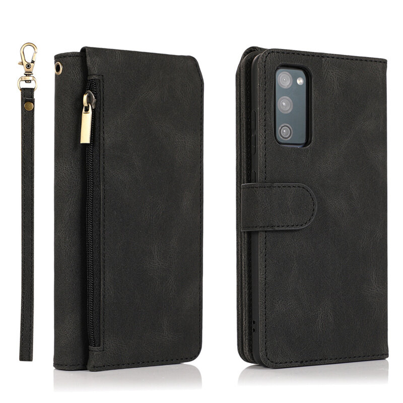 Luxury Zipper Wallet Case For Samsung Galaxy S23 S22 S21 S20 FE S10 E S9 Note 20 10 9 Ultra Plus Lite Leather Flip Card Phone Bags Cover