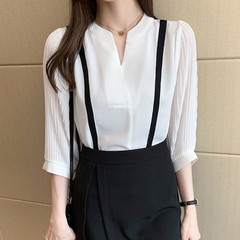 YIGE Elegant Blouse Dress Plus Size Summer 2022 V-Neck Chiffon Tunic