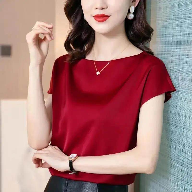 EDQRDQ Women's Short Sleeve Satin Plus Size Blouse Casual Loose Silk Tops Shirt Loose Fit Top