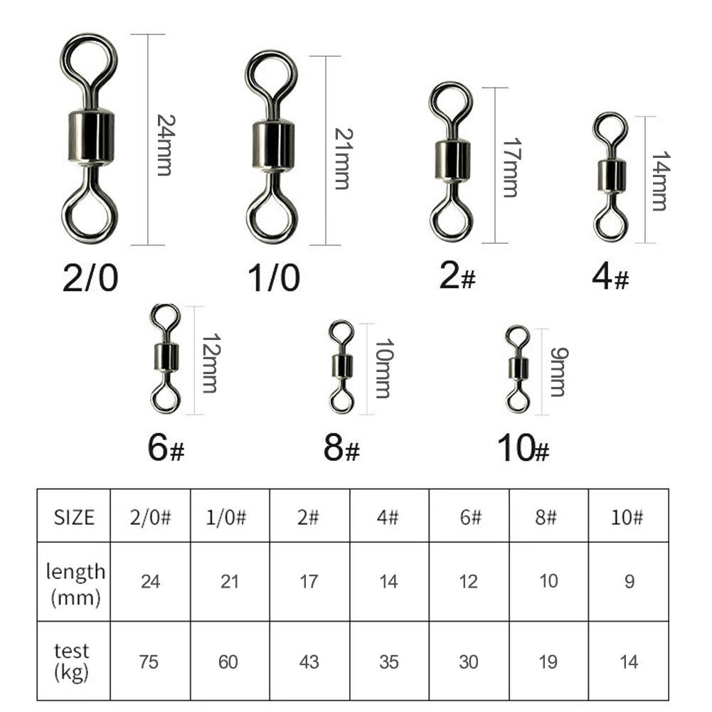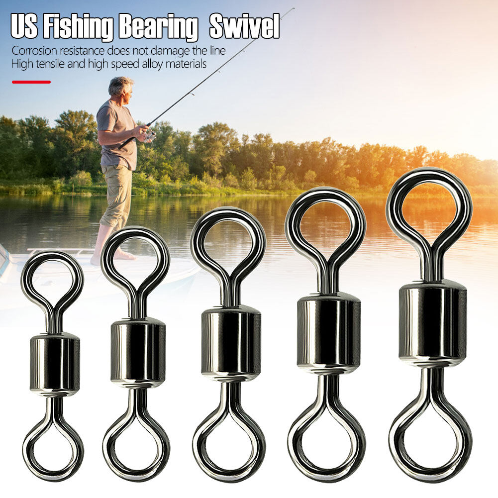 Hittime 100/50PCS US Fishing Swivel Solid Connector Ball Bearing Snap For Jigging/Casting Fishing/Power Rolling Stainless Steel Beads