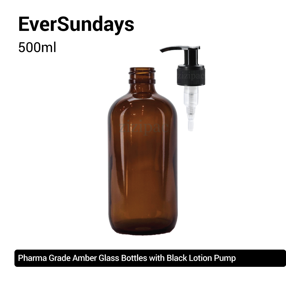 ( 3pcs/5pcs/10pcs ) EverSundays Amber Glass Bottles + Black Lotion Pump - 250ml / 500ml
