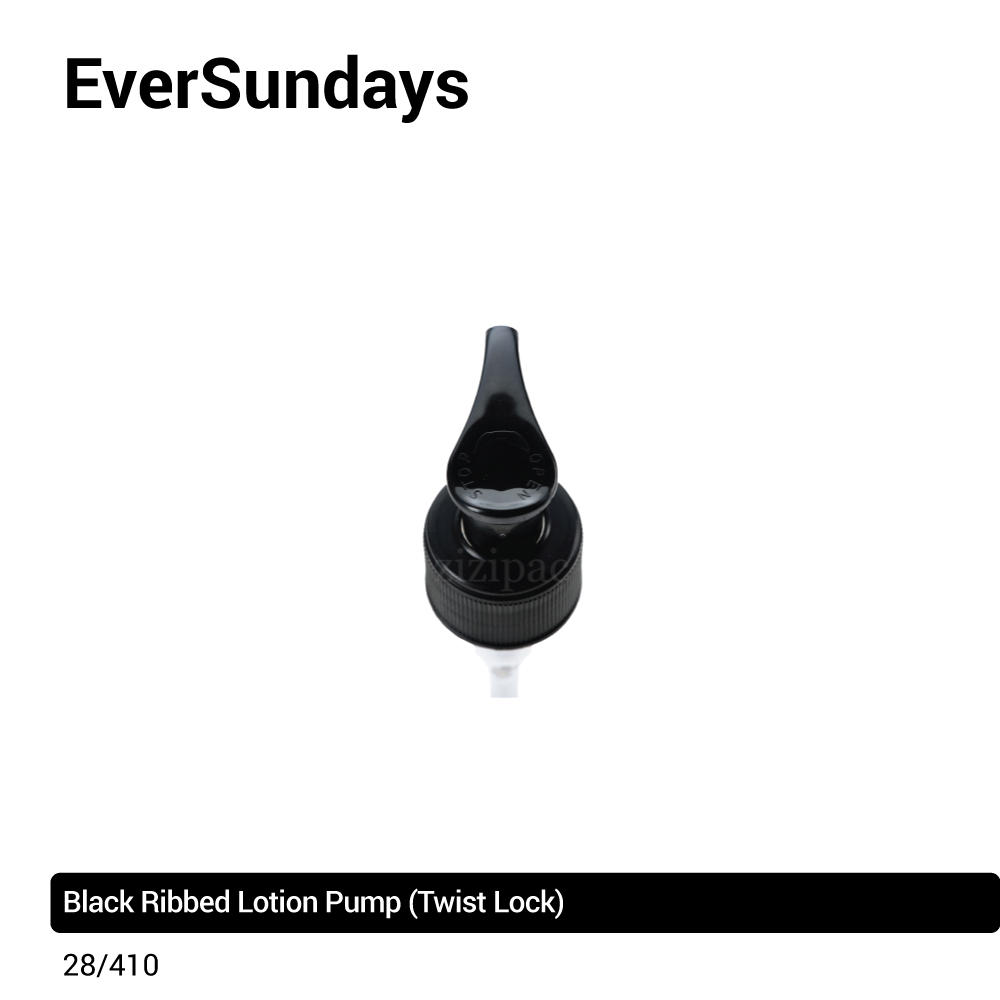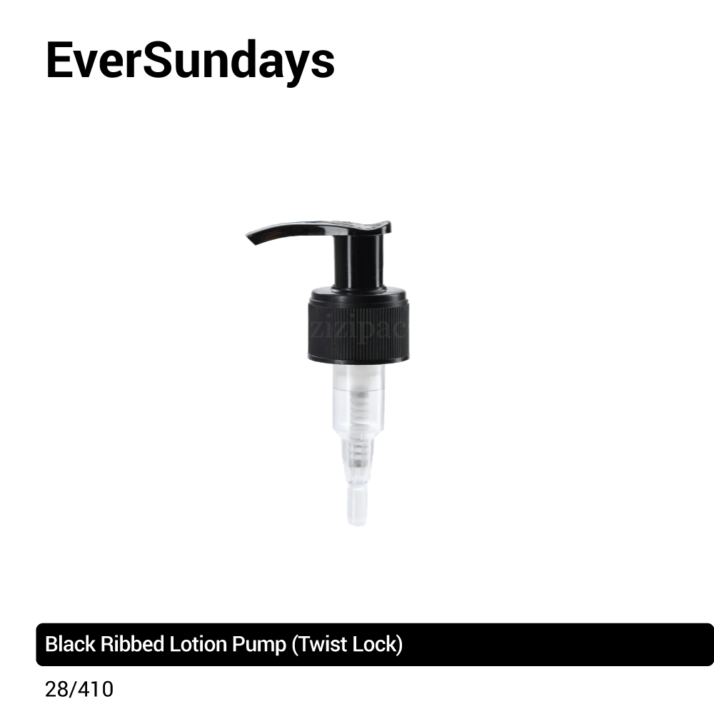 Each glass bottle comes paired with a black lotion pump. Lotion pumps come with a twist lock function.