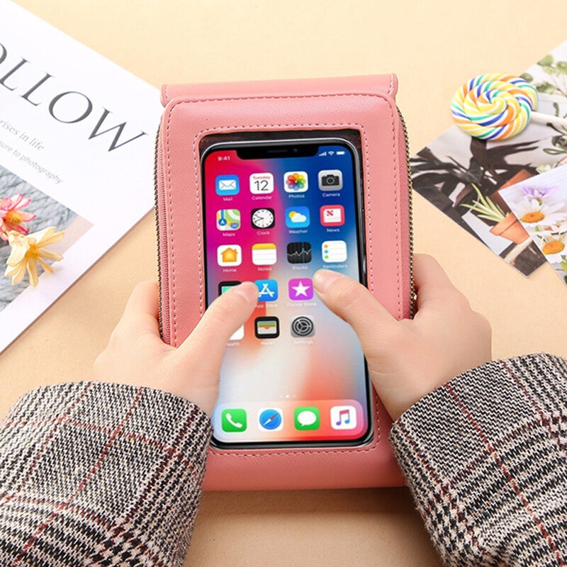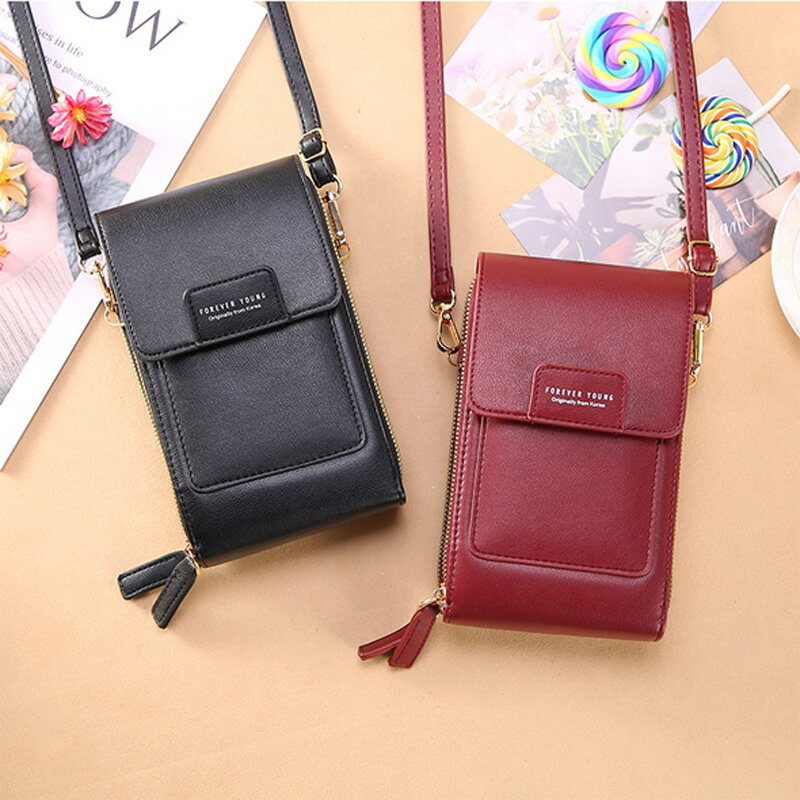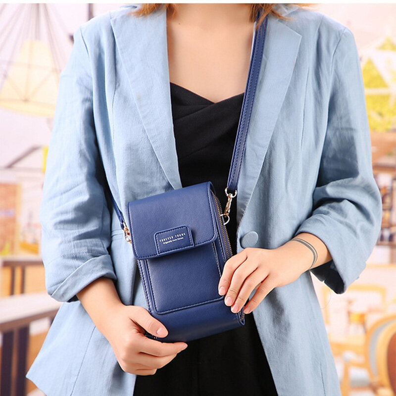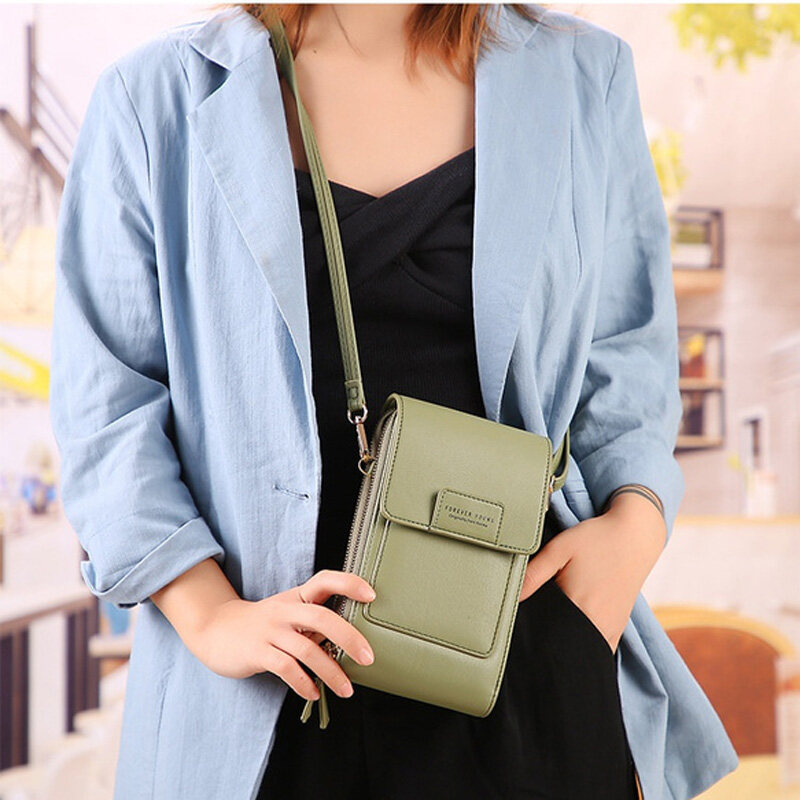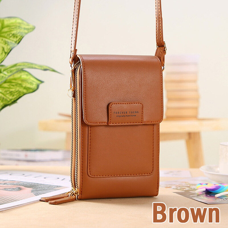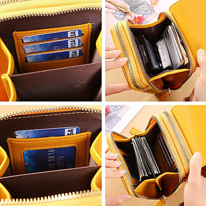 RFID New Women Double-layer Waterproof Leather Large Capacity Touch Screen Shoulder Bags Female Crossbody Bags Girls Handbag Phone Purse