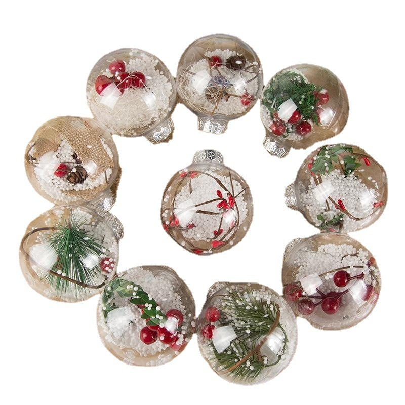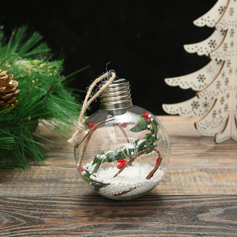 8cm Transparent DIY Christmas Tree Hanging Ball Acrylic Clear Xmas Ball LED Ball Ornament Gift Holiday Wedding Party Decor