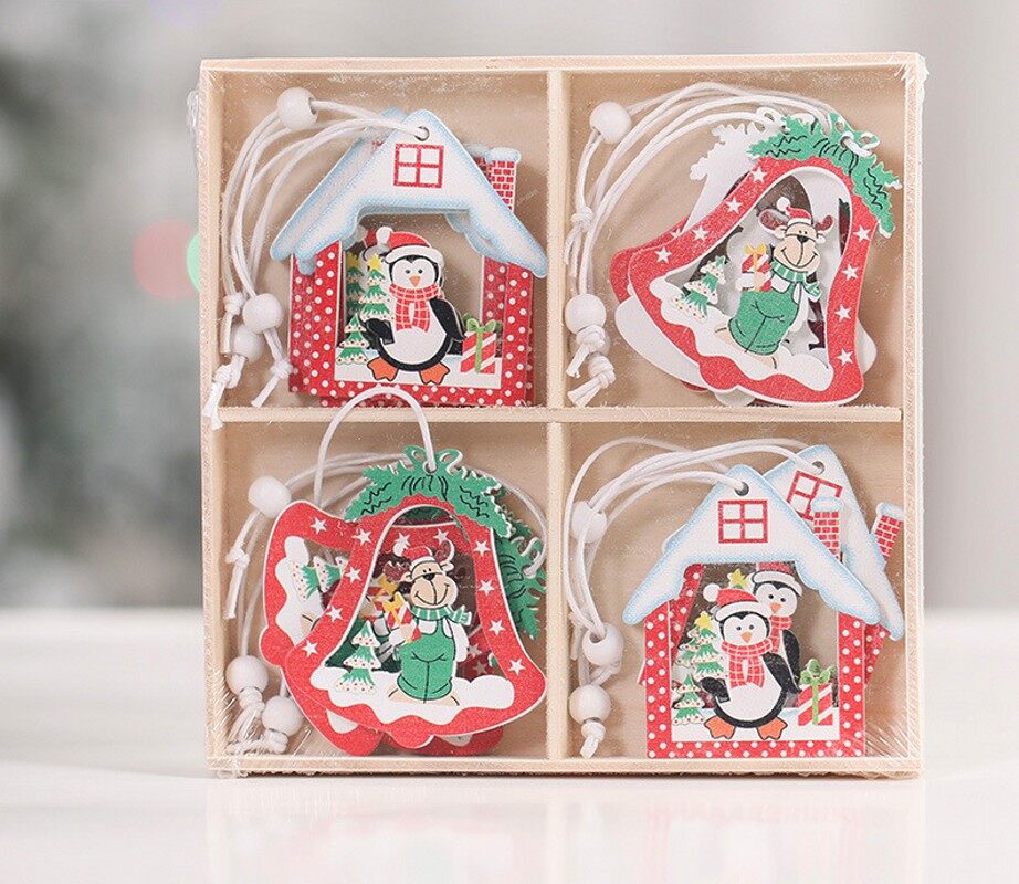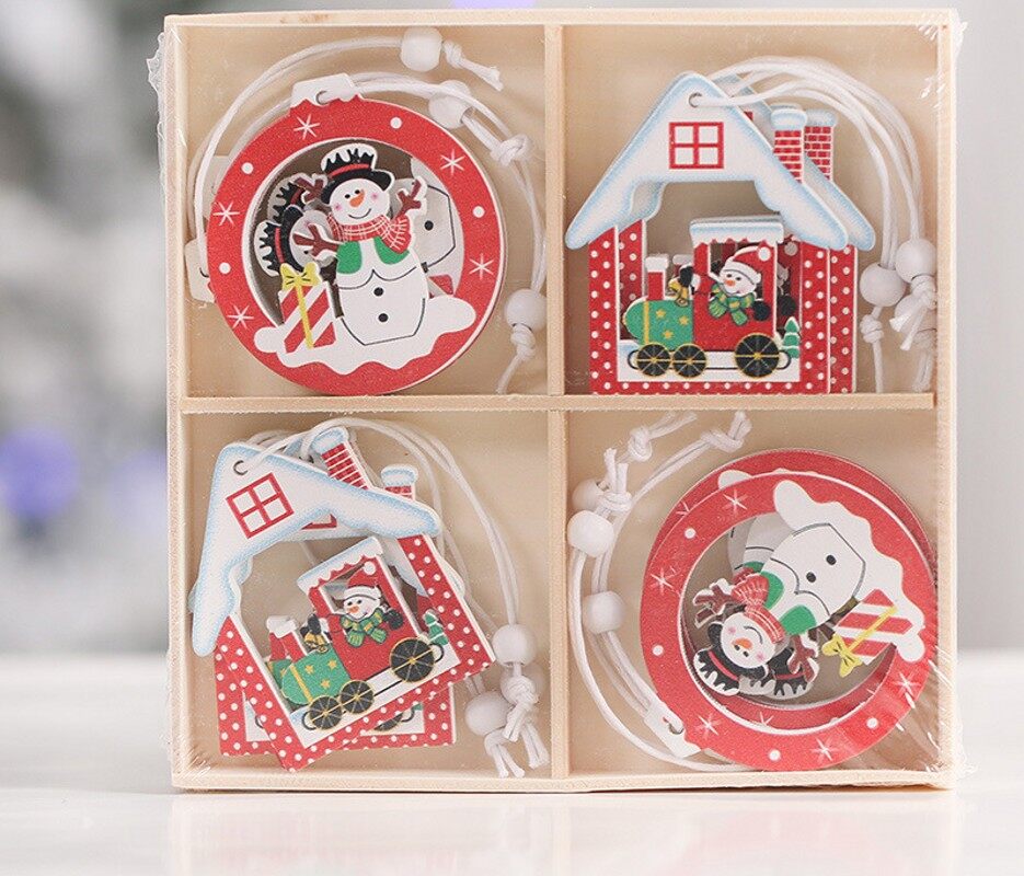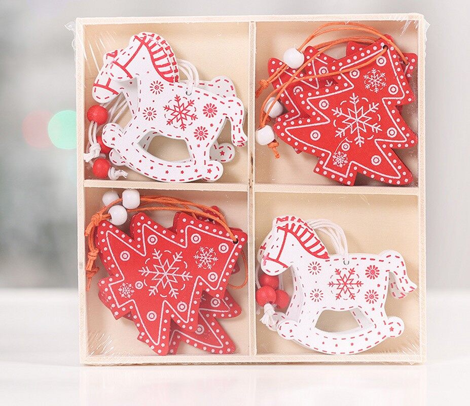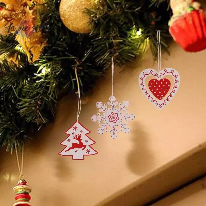 12pcs/lot Christmas Tree Ornament Wooden Snowflake Hanging Pendants Xmas Decoration For Home New Year Kids Gifts Party Favors