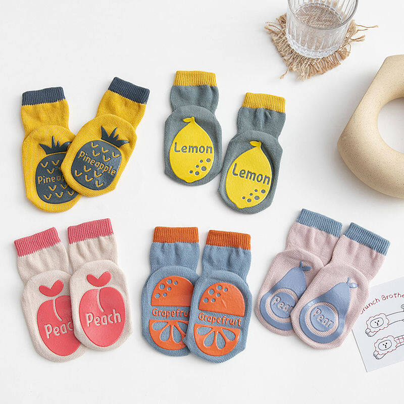 3 Pairs Kids Floor Socks Baby Newborn Infant Anti Slip Sock Breathable Indoor Toddler Socks Cute Fruit Children Socks