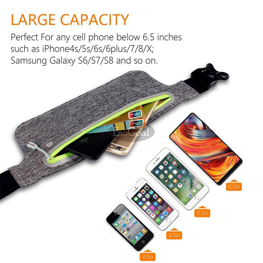 EsoGoal Slim Running Belt Waist Pack, Water Resistant Runners Belt Fanny Pack with Zipper Ultra Light Bounce Free Waist Pouch Fitness Workout Belt Sport Waist Pack Exercise Waist Bag – Suitable for Hi