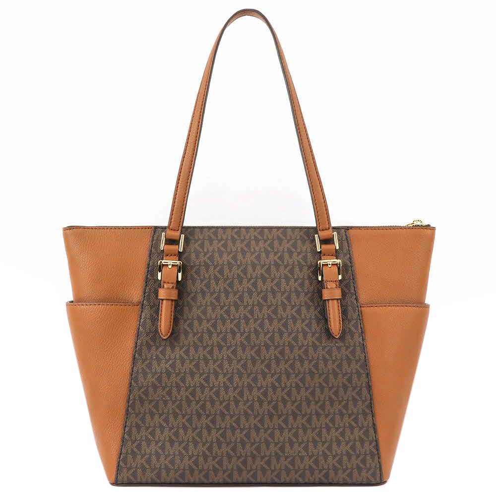 Michael Kors Handbag With Gift Paper Bag Charlotte Large Top Zip Tote Brown # 35T0GCFT3B