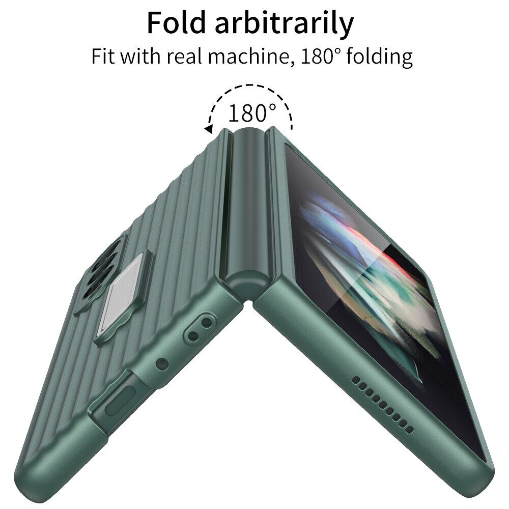 KISSCASE Magnetic Stand Vertical Pattern Mobile Phone Case with Screen Tempered Glass Film for Samsung Galaxy Z Fold 3 5G Foldable PC Hard Case