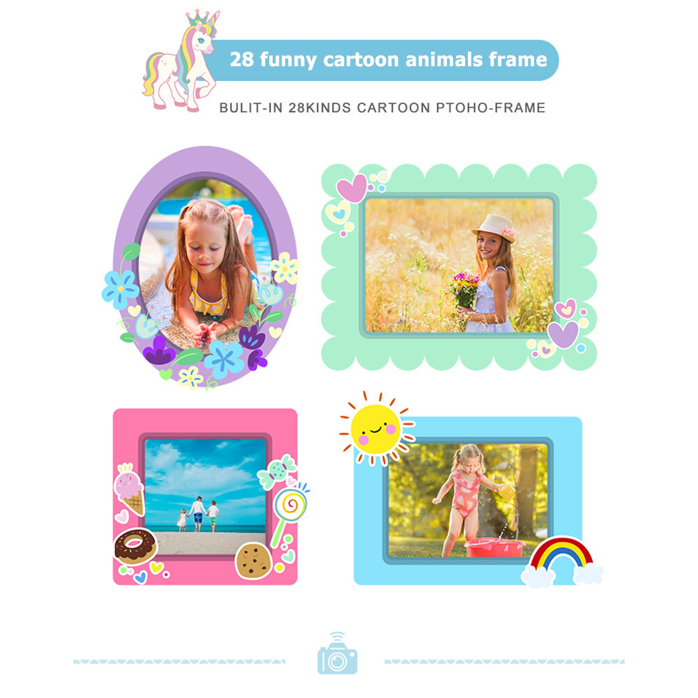Kids Camera 2 inch IPS Color Screen Cute Horse Mini Digital Video Camera Children Baby Educational Toys Gift