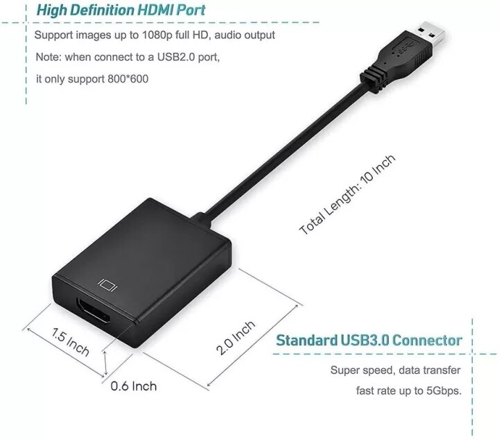 • 【1080p compatible with USB 3.0 and USB 2.0】Video resolution is as high as 1920 x 1080p @ 60Hz and 3D display support. The same is true of USB 2.0. When connected to USB 3.0 or USB 2.0 port, the screen supports 1920 x 1080p @ 60Hz display.