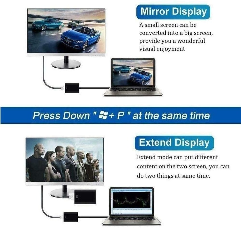 • 【Mirror and extended mode】 The USB to VGA converter has 2 modes. In mirror mode, the same images are displayed, giving you a better viewing experience. Extended mode expands your workspace up to two additional displays, a TV or a projector via the USB interface. Perfect for games, home theater, video conferencing and more.