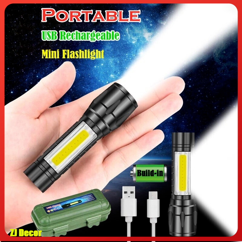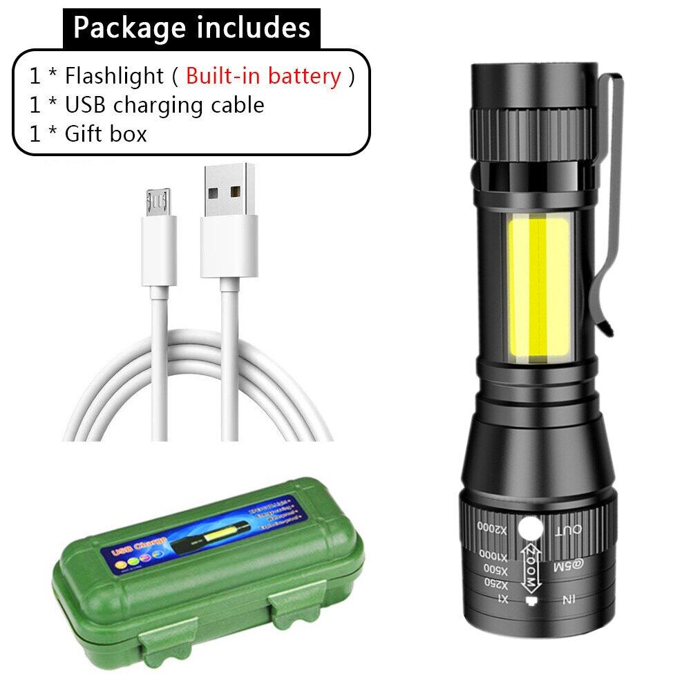 Mini Flashlight Zoom Powerful Torchlight with COB side light Built In Battery Rechargeable Pocket Torch for Camping /Cycling/Hiking