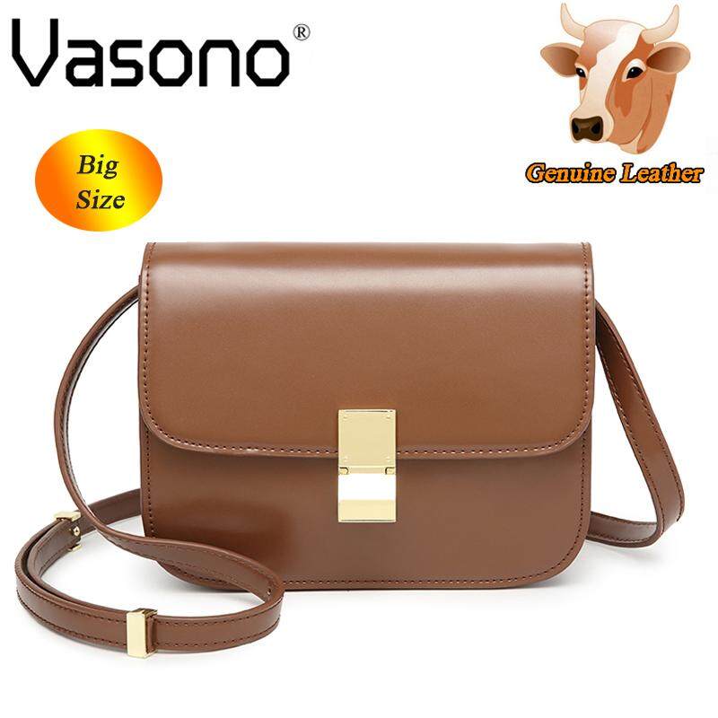【Vasono】High Quality 100% Genuine Cow Leather Women Tote Bag Top Handle Shoulder Beg Wanita - intl