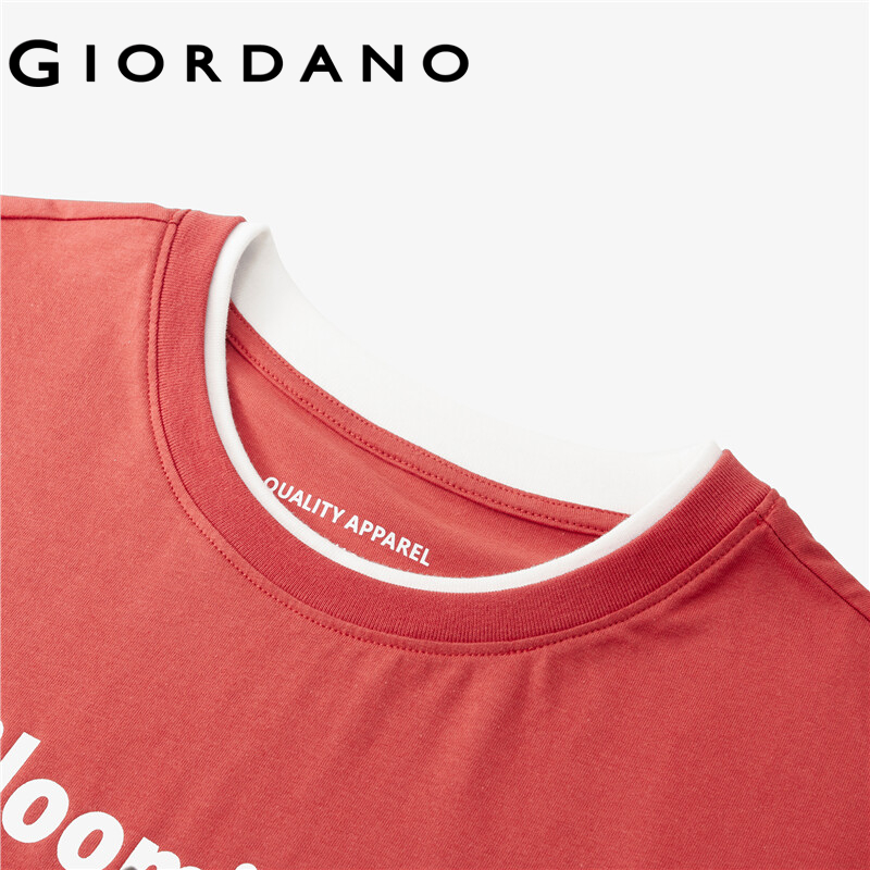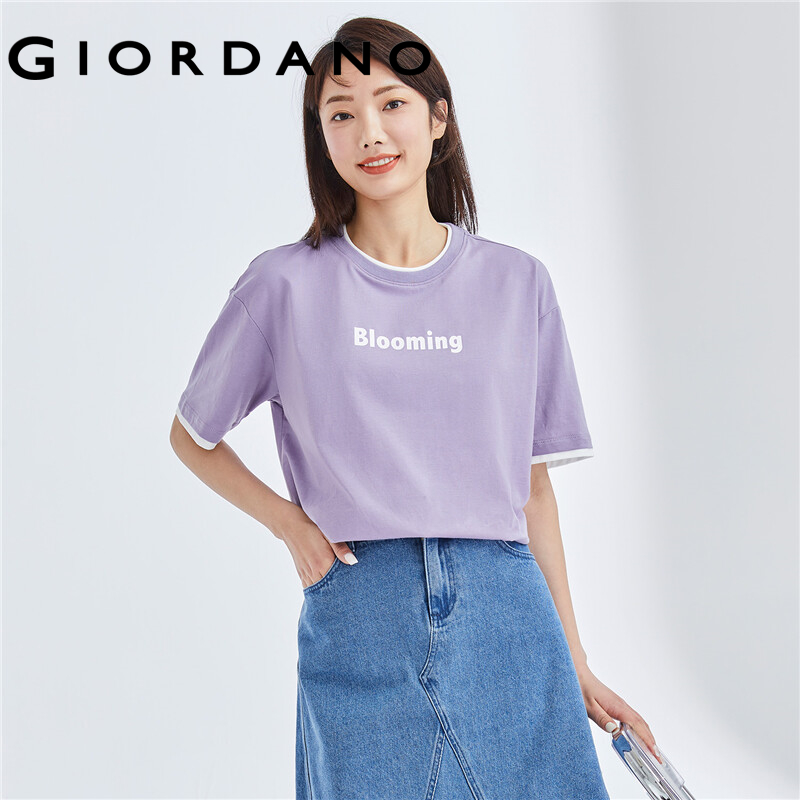 GIORDANO Women T-Shirts Letter Print Fake 2-Piece 100% Cotton T-Shirts Summer Short Sleeve Loose Relaxed Basic T-Shirts 05322390