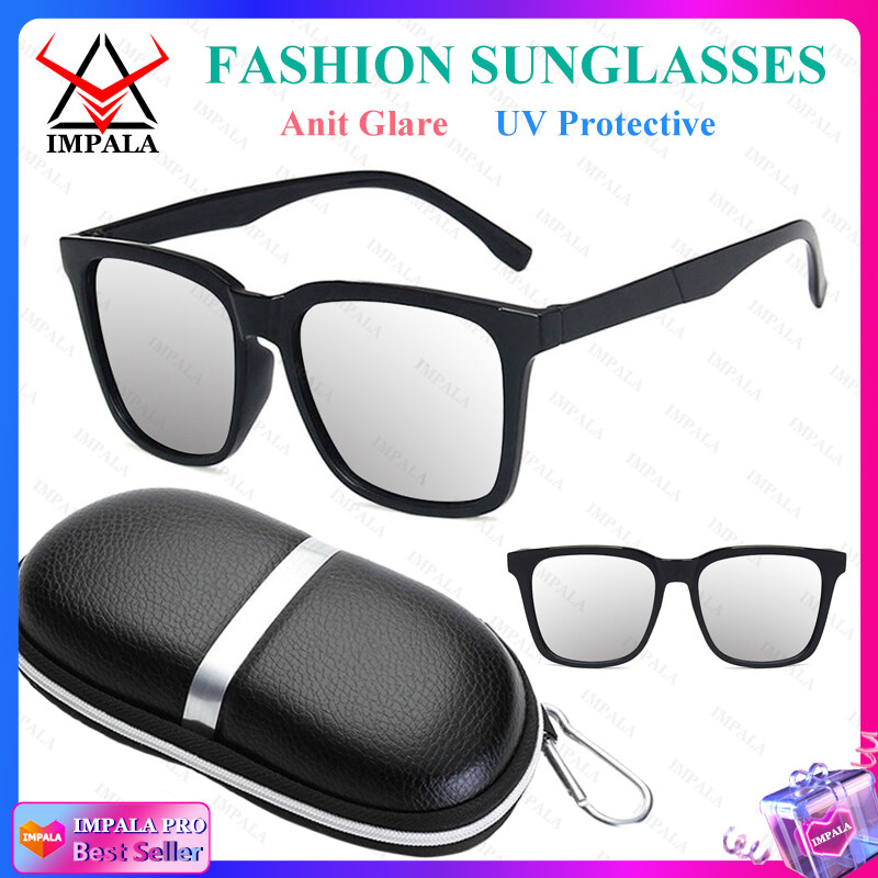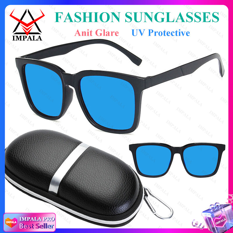 IMPALA QT1612L Fashion Sunglasses for Men and Women Anti Glare Sun Glasses UV400 Protective Block Sunshine Driving Traveling Eyewear with Buckle Box