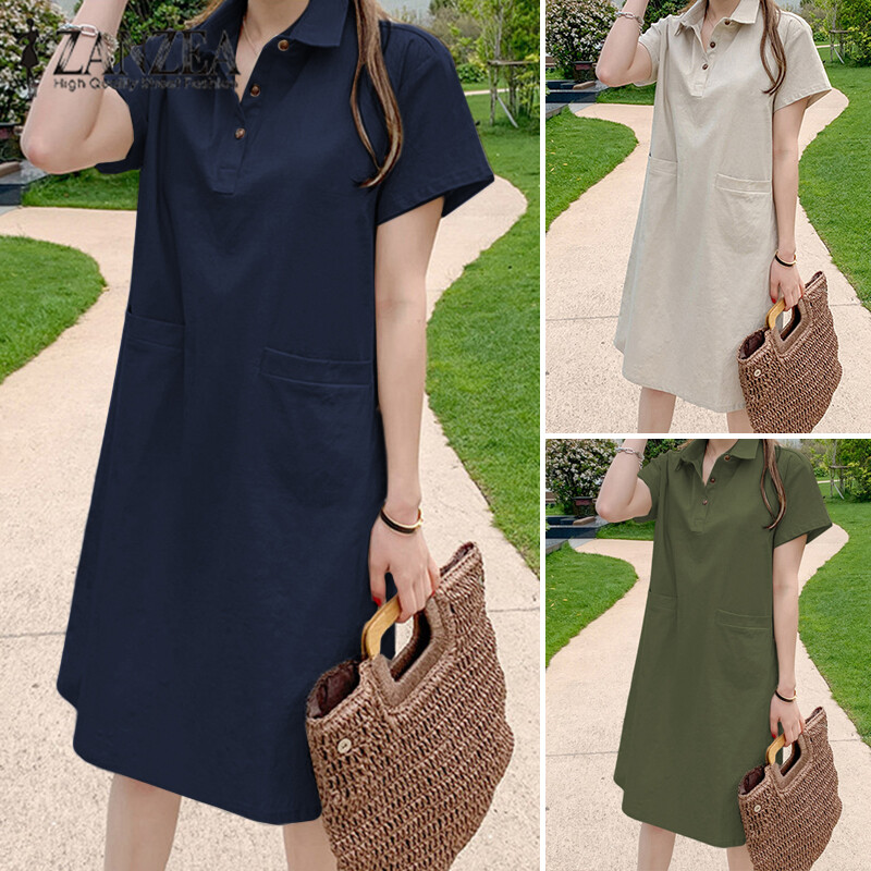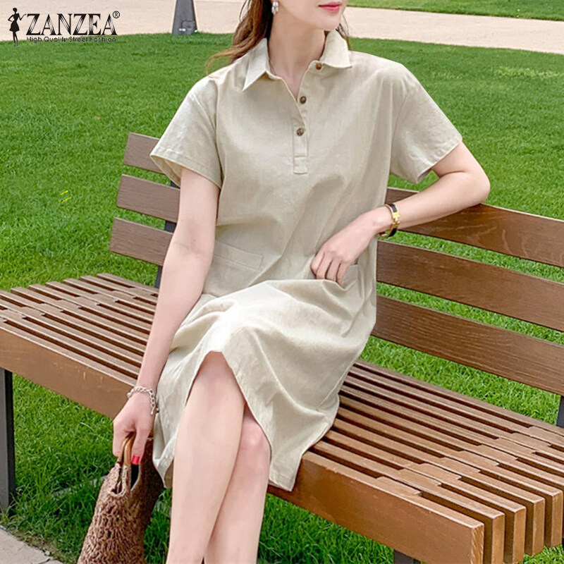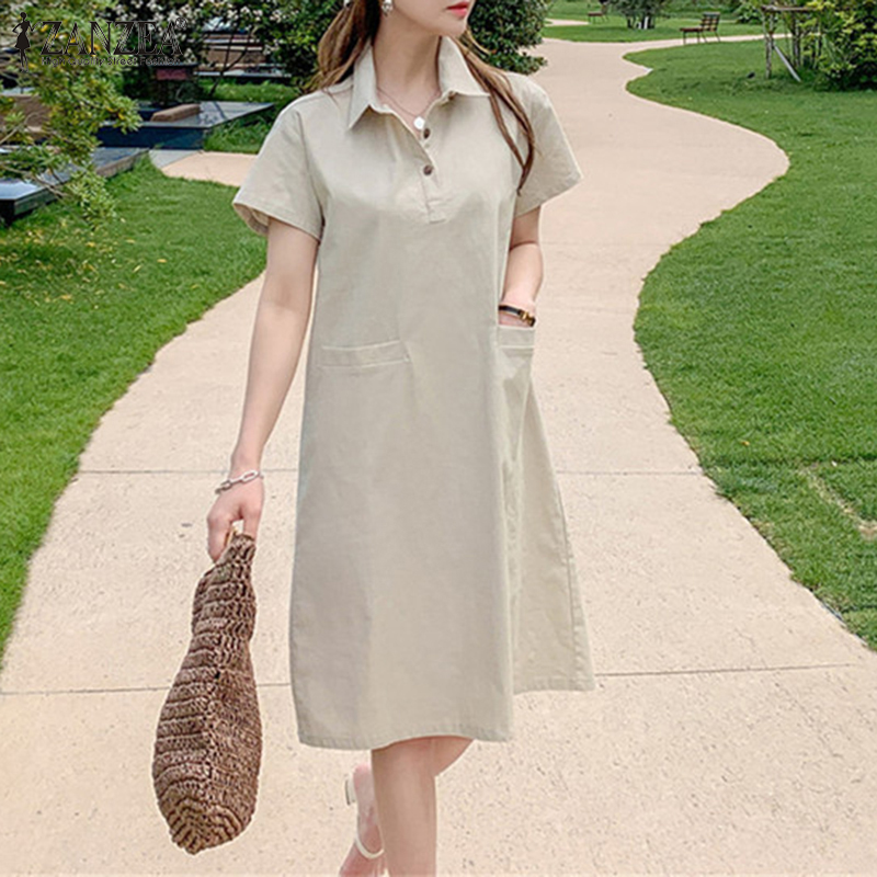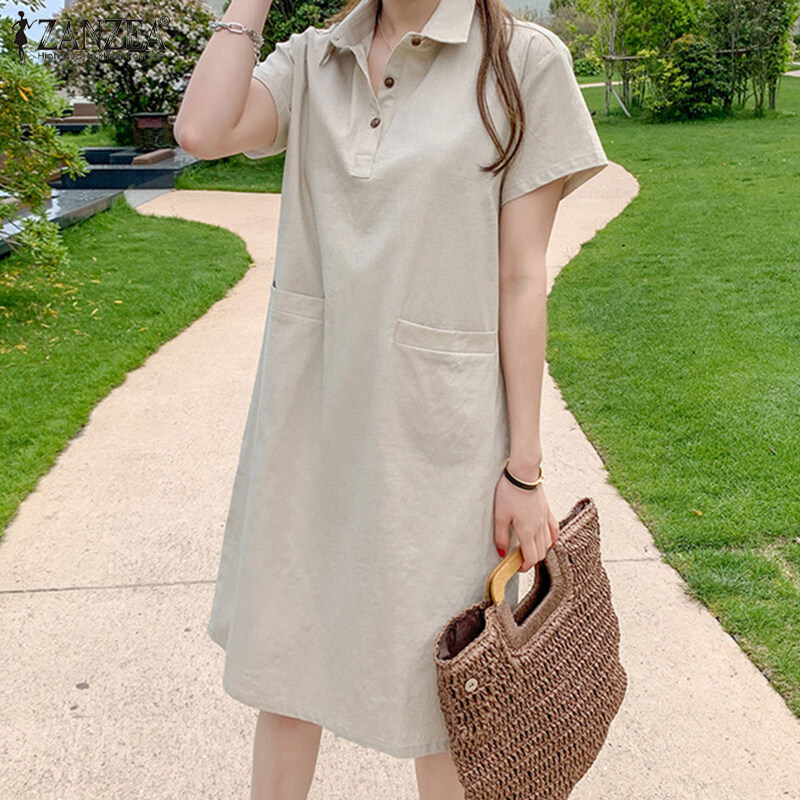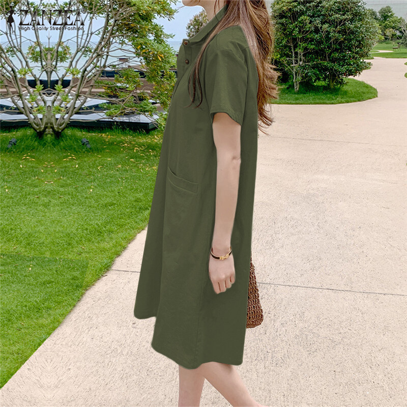 ZANZEA Korean Style Womens Casual Outing Holiday Dress Short Sleeve Plain Mini Shirt Dresses