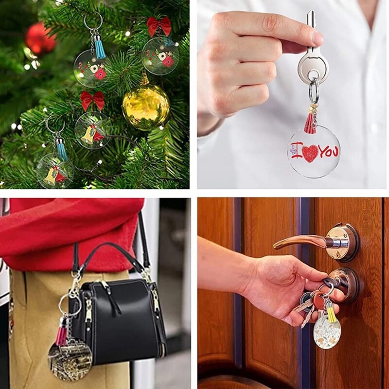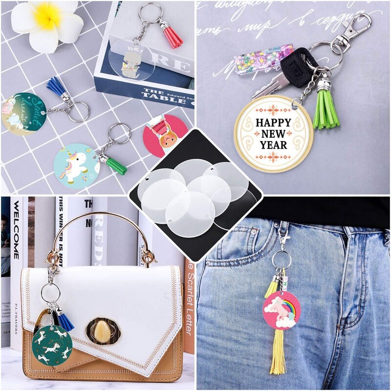 Acrylic Keychain Blanks Clear Round Keychain Acrylic Circle Blank Ornaments Set for Vinyl Crafting DIY Keychain Making