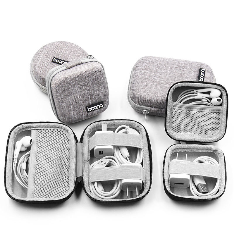 Small Oval Earphone Storage Bags Hard Shell Data Cable Organizer Bag Mini Tech Gadgets Portable Case Charger U Disk Zipper Pouch