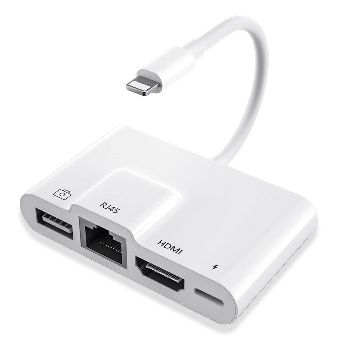 Step 1: Connect H-DMI port to TV or projector via this digital AV adapter cable;