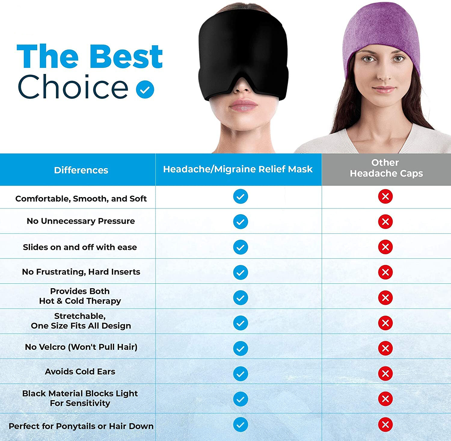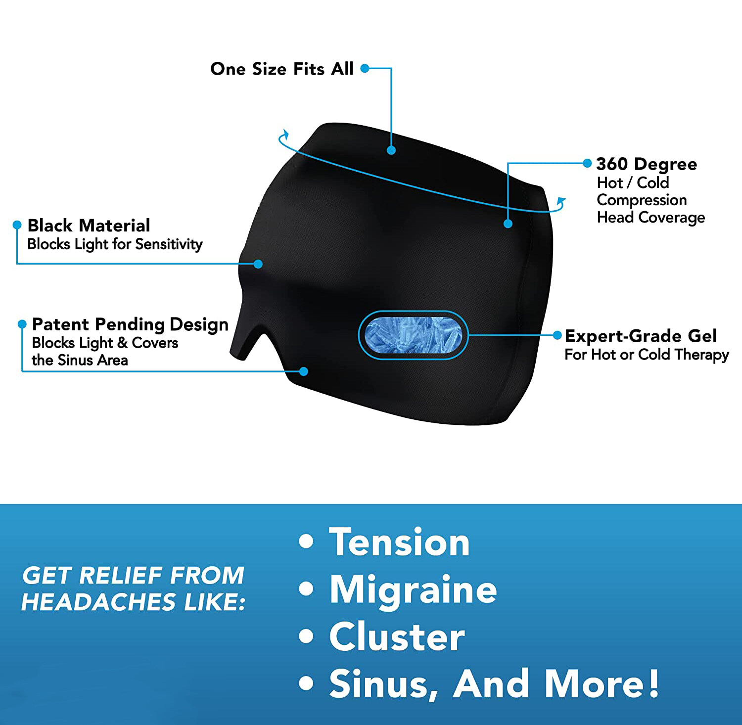 [pantorastar] Form Fitting Gel Ice Headache Migraine Relief Hat Cold Therapy Migraine Relief Cap Comfortable Stretchable Ice Pack Eye Mask for Puffy Eyes Tension Sinus and Stress Relief