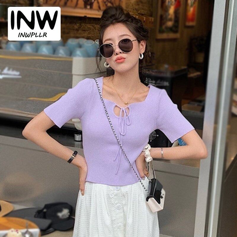 INWPLLR Design Sense Bow T-shirts Women's Fashionable Short Sleeve Tops Tees Front And Back Wear Female Tshirt