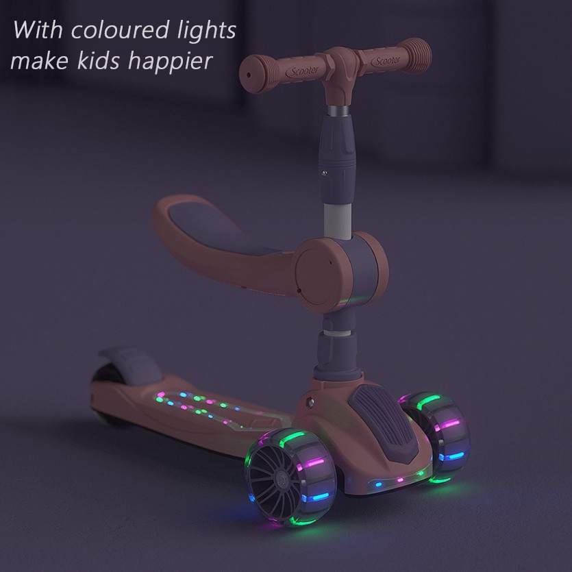 ?? OneTwoFit Kids Adjustable Light Scooter With Seat Music Colored Children Scooters