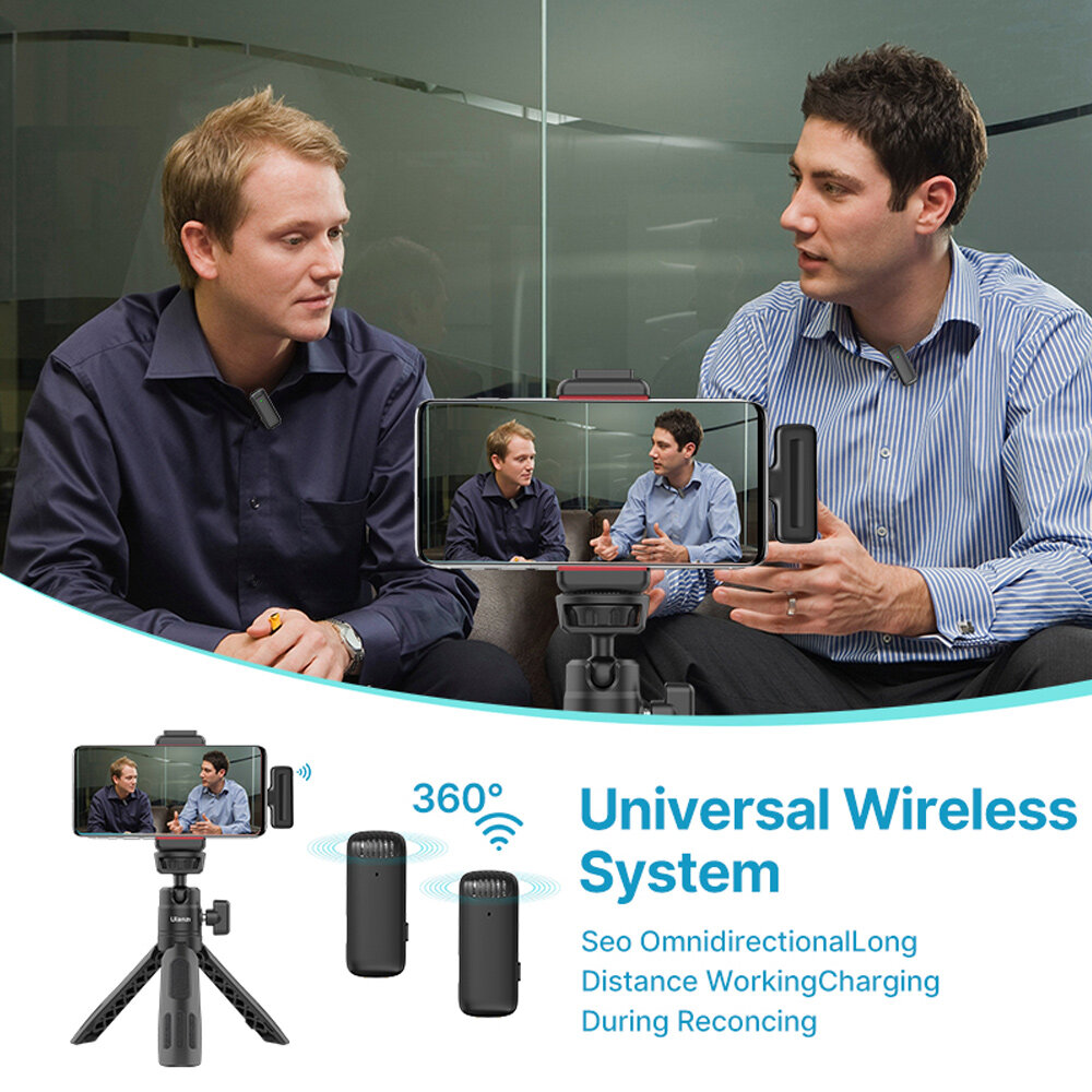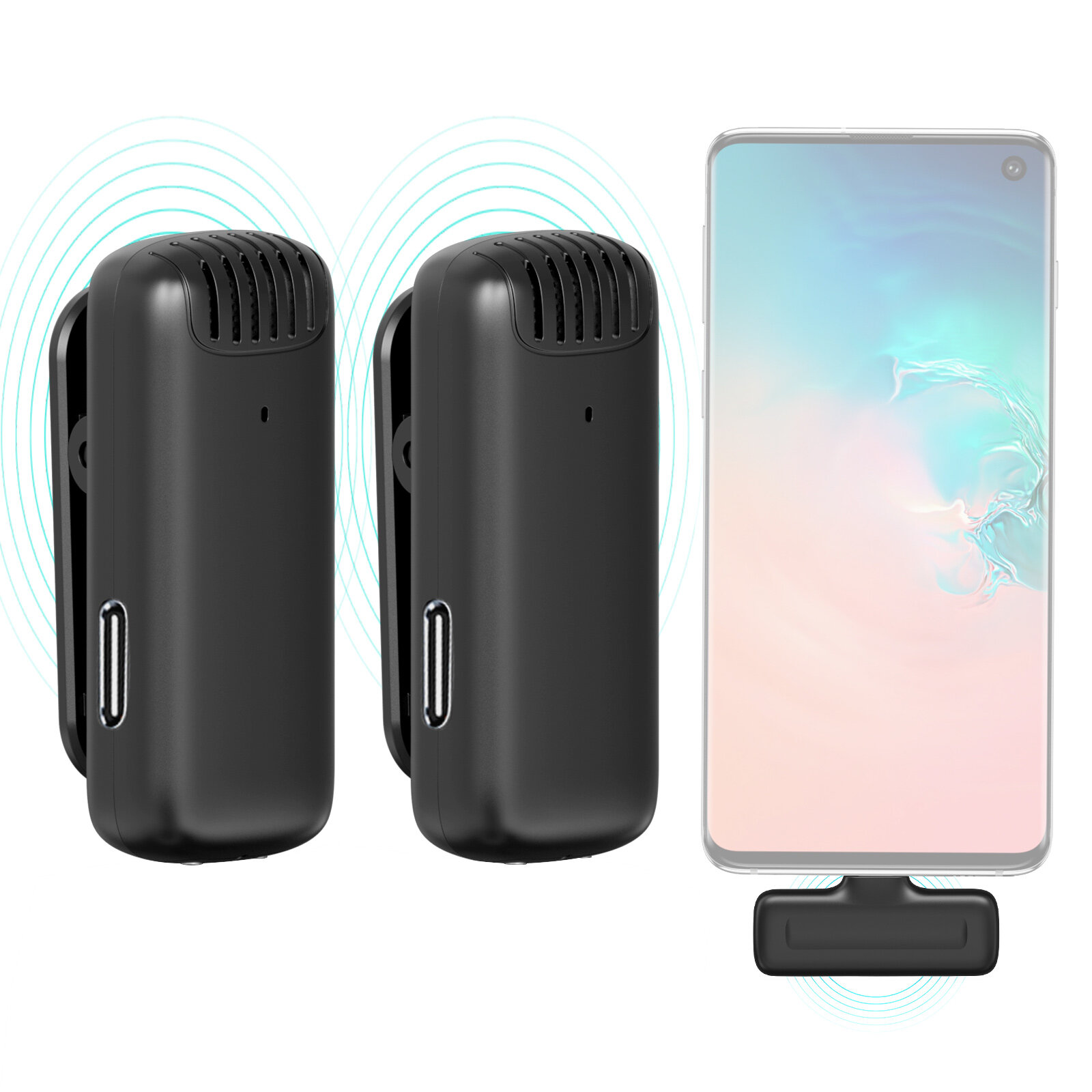 【Wireless Microphone System】Including 1 receivers & 2 microphone transmitters, supports dual microphone simultaneous recording, plug-and-play, no APP needed, very suitable for phone vlog, live streaming, interview, online chatting, etc.