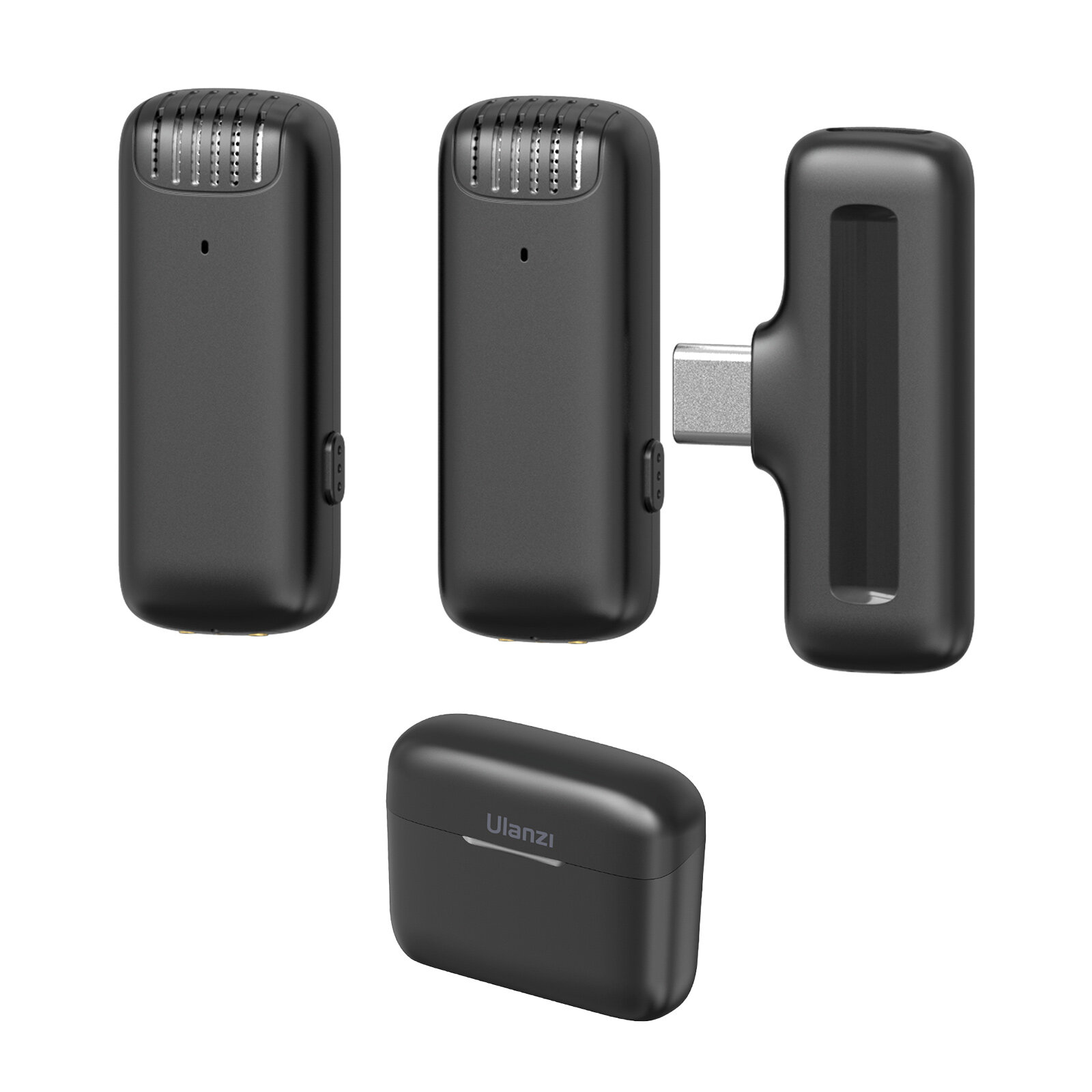 wireless charging case, just put the mic transmitters and receiver into it, than you can charge them anywhere anytime. The charging case supports 4-5 times charging after being fully charged. Mini and lightweight, easy to carry around.