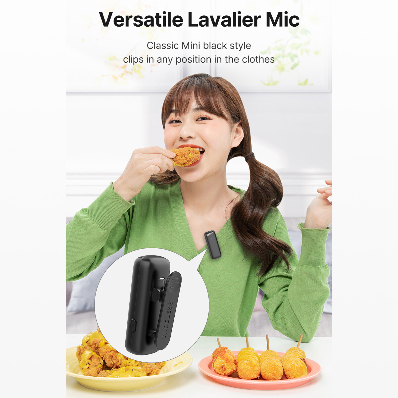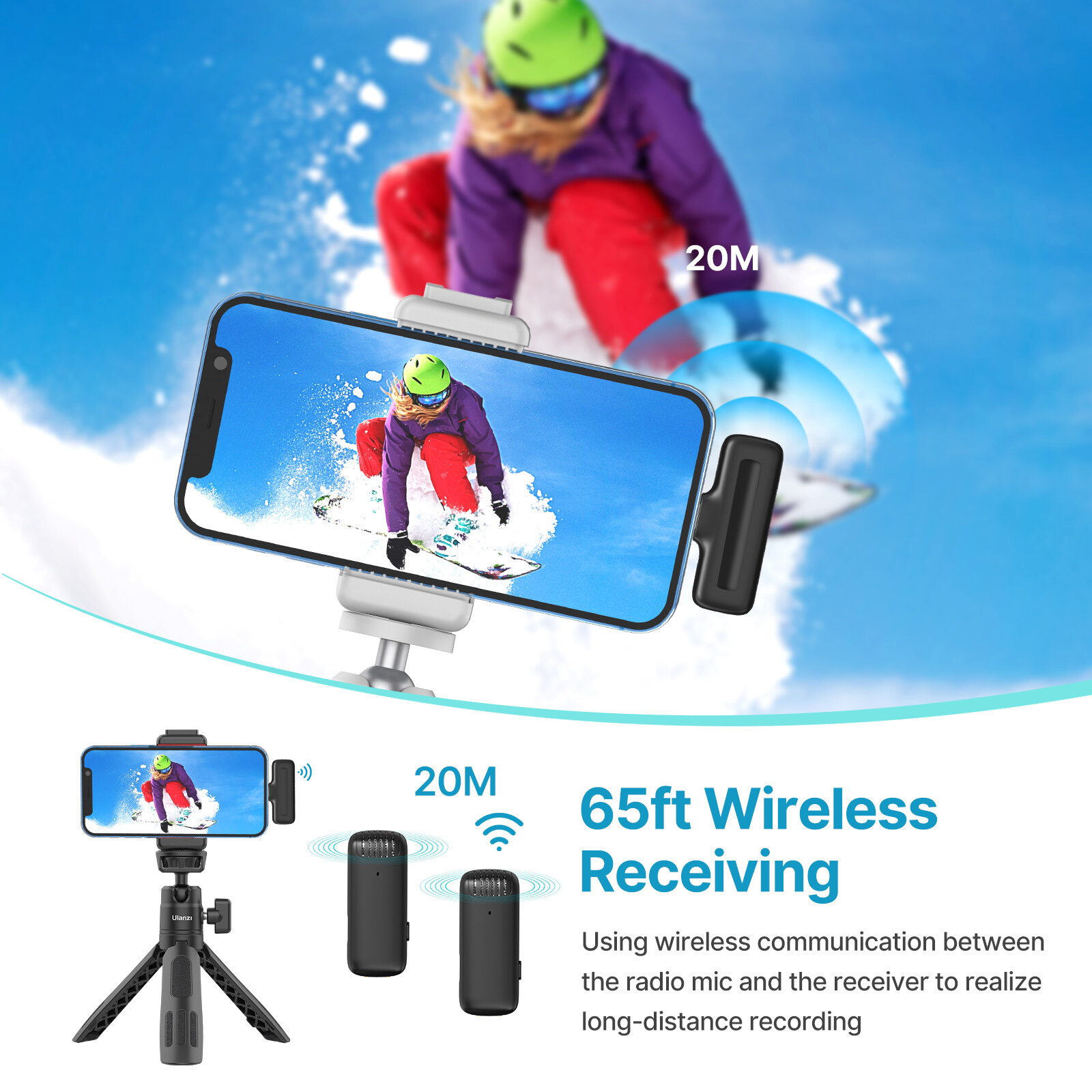 Including 1 receivers & 2 microphone transmitters, supports dual microphone simultaneous recording, plug-and-play, no APP needed, very suitable for phone vlog, live streaming, interview, online chatting, etc.
