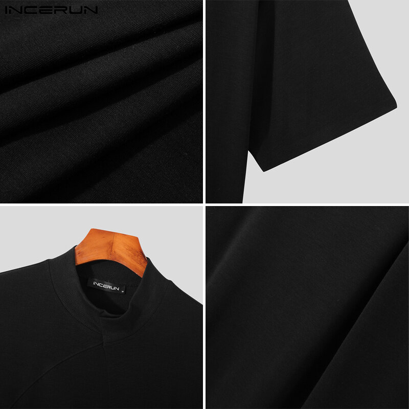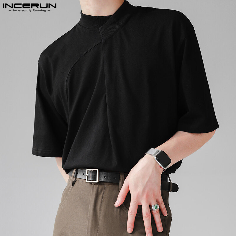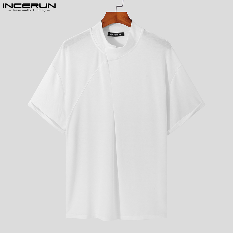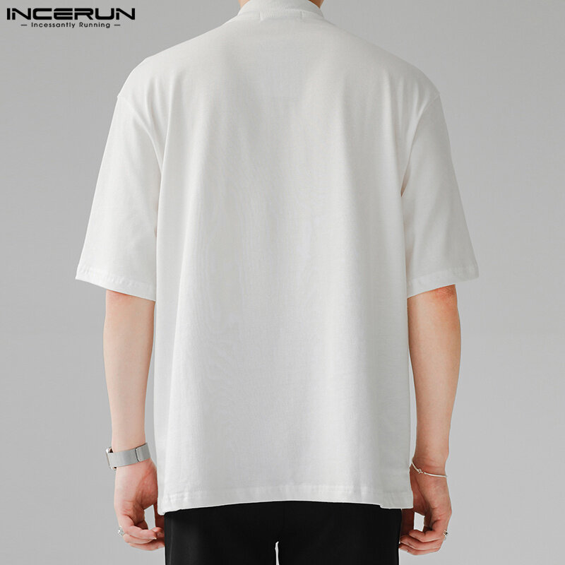 INCERUN Mens Short Sleeve Casual Loose T Shirts Solid Pullover Tops Blouse (Korean Style)